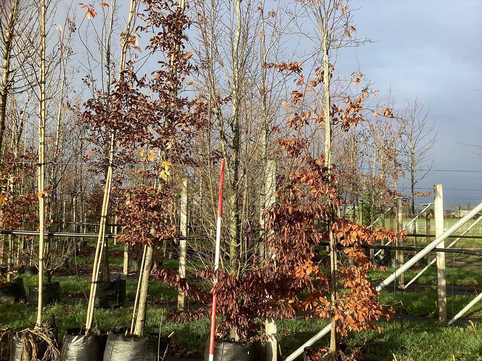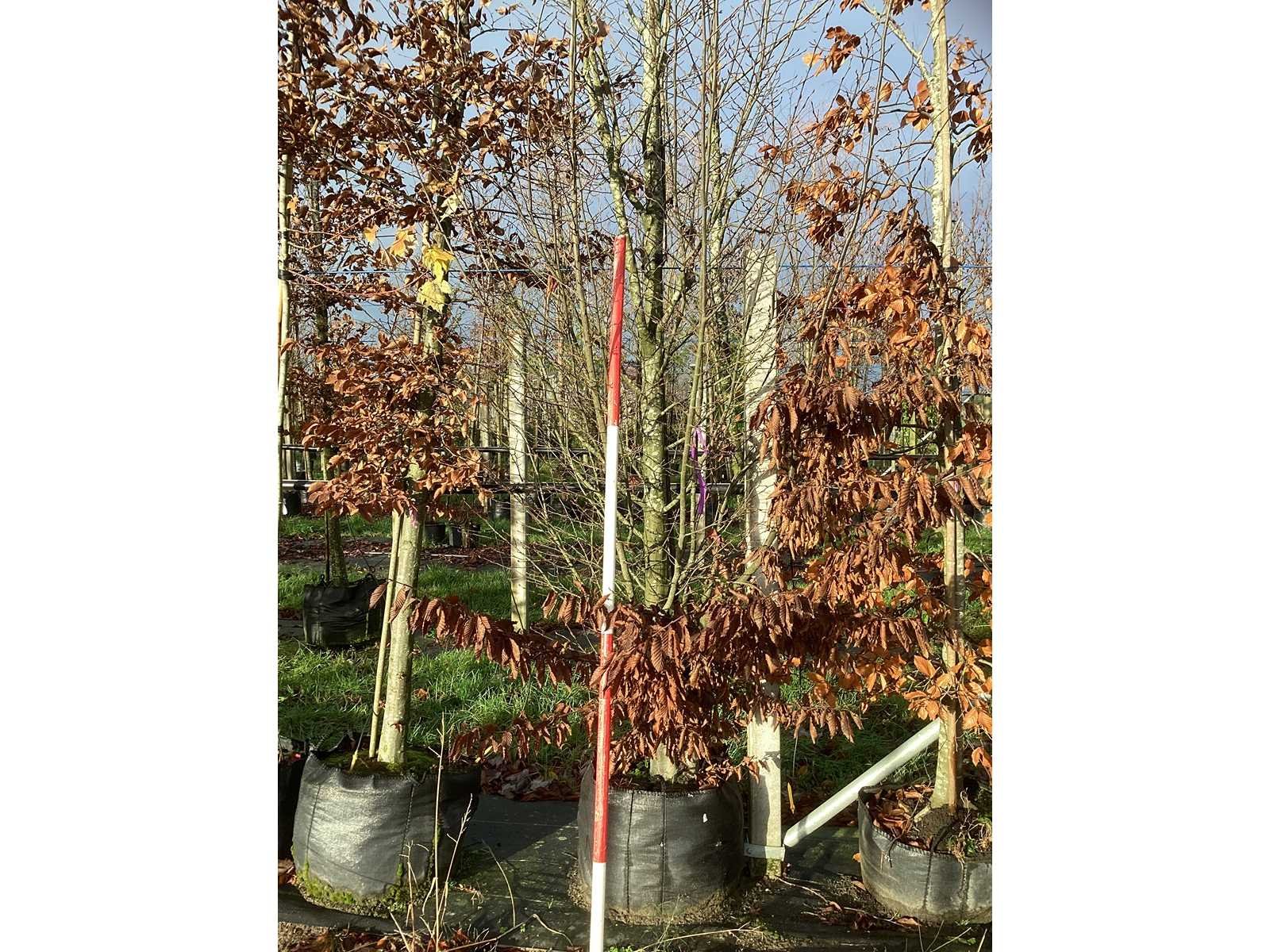 De kavels worden door ons verzameld en klaargelegd voor transport; Wilt u gebruik maken van de bezorgservice neem dan contact op via het emailadres info@groviatrees.com. Laat dit voor week 51 weten zodat we zo snel mogelijk uw planten kunnen laten bezorgen. Als tip, de bomen zitten nu in de winterrust dus wilt u graag weten wat de zomer- en de herfstkleuren zijn, kijk dan op internet daar staan hele mooie voorbeelden van de bomen. Type: Haagbeuk Latijnse benaming: Carpinus Fastigiata Hoogte ca.: 600cm In pot: true Stamdikte: 24cm
