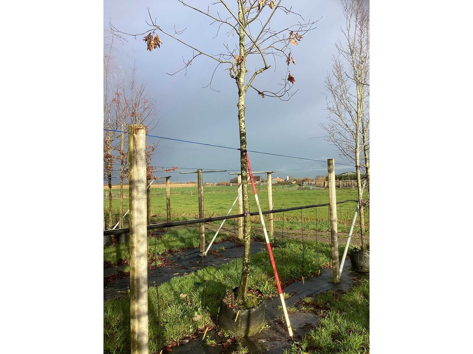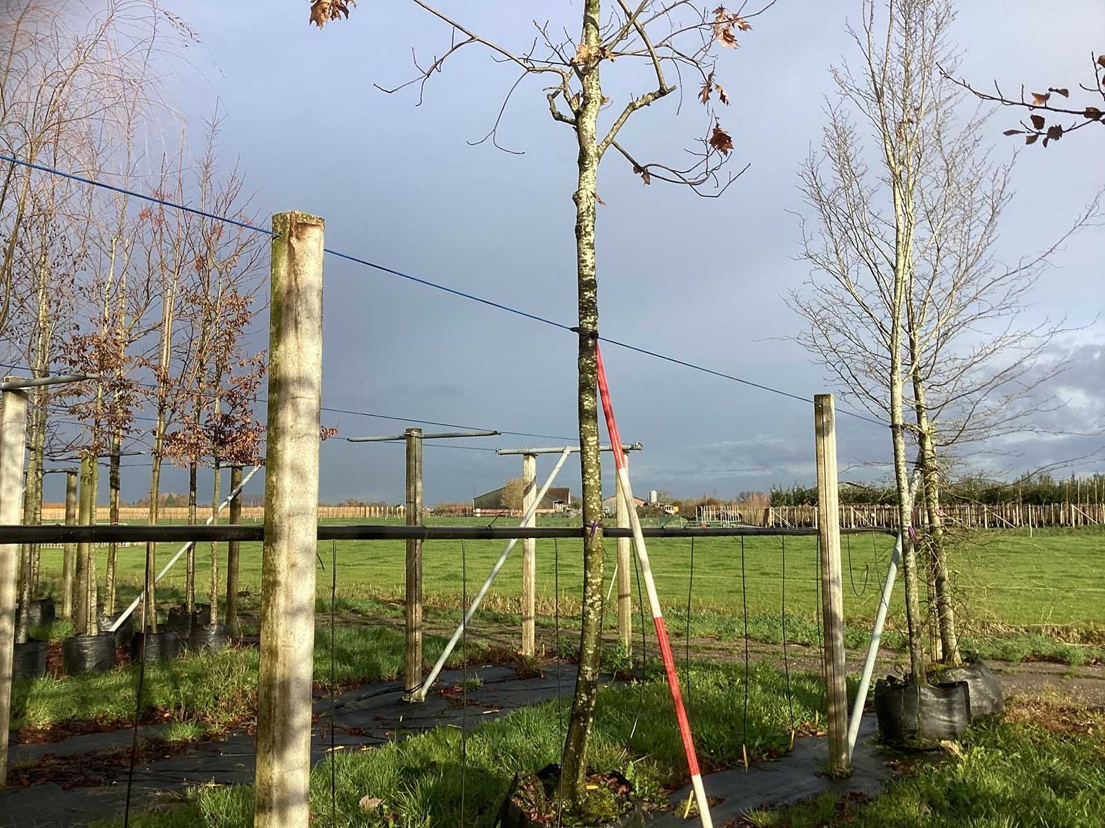 De kavels worden door ons verzameld en klaargelegd voor transport; Wilt u gebruik maken van de bezorgservice neem dan contact op via het emailadres info@groviatrees.com. Laat dit voor week 51 weten zodat we zo snel mogelijk uw planten kunnen laten bezorgen. Als tip, de bomen zitten nu in de winterrust dus wilt u graag weten wat de zomer- en de herfstkleuren zijn, kijk dan op internet daar staan hele mooie voorbeelden van de bomen. Type: Moeraseik Latijnse benaming: Quercus palustris Hoogte ca.: 600cm In pot: true Stamdikte: 20cm