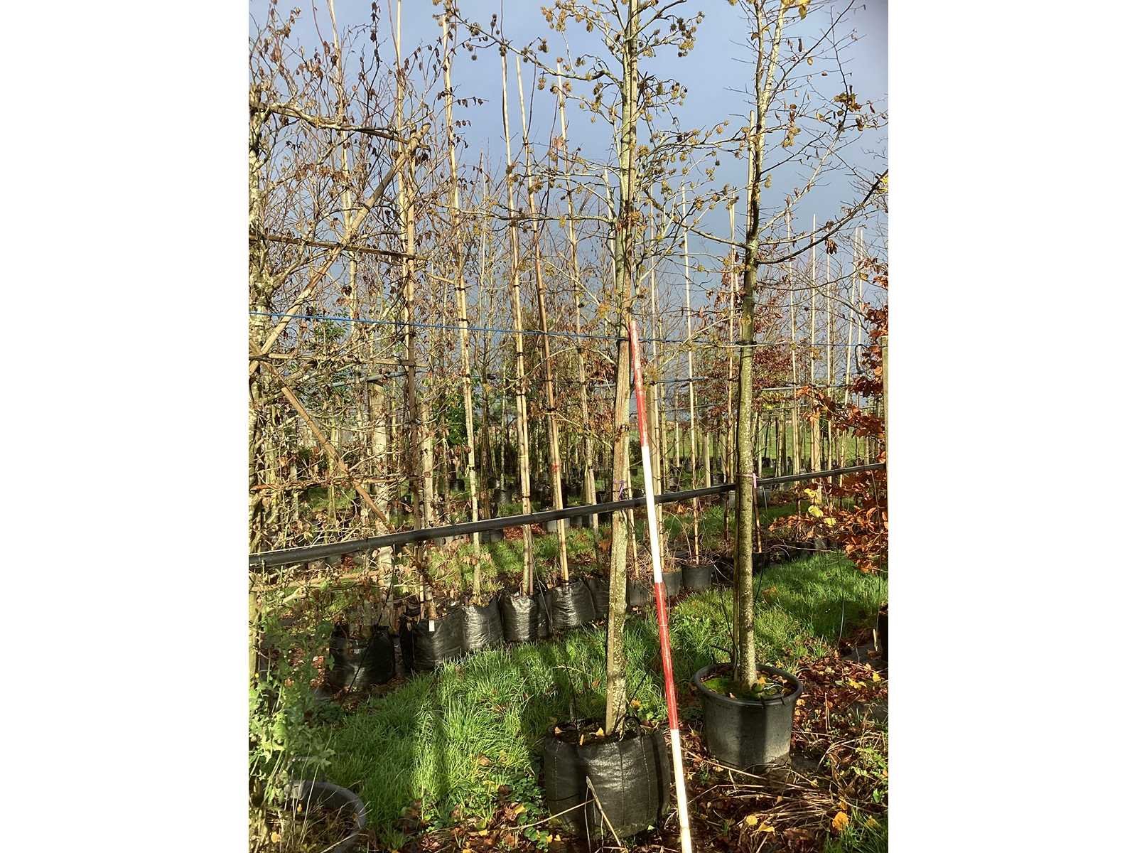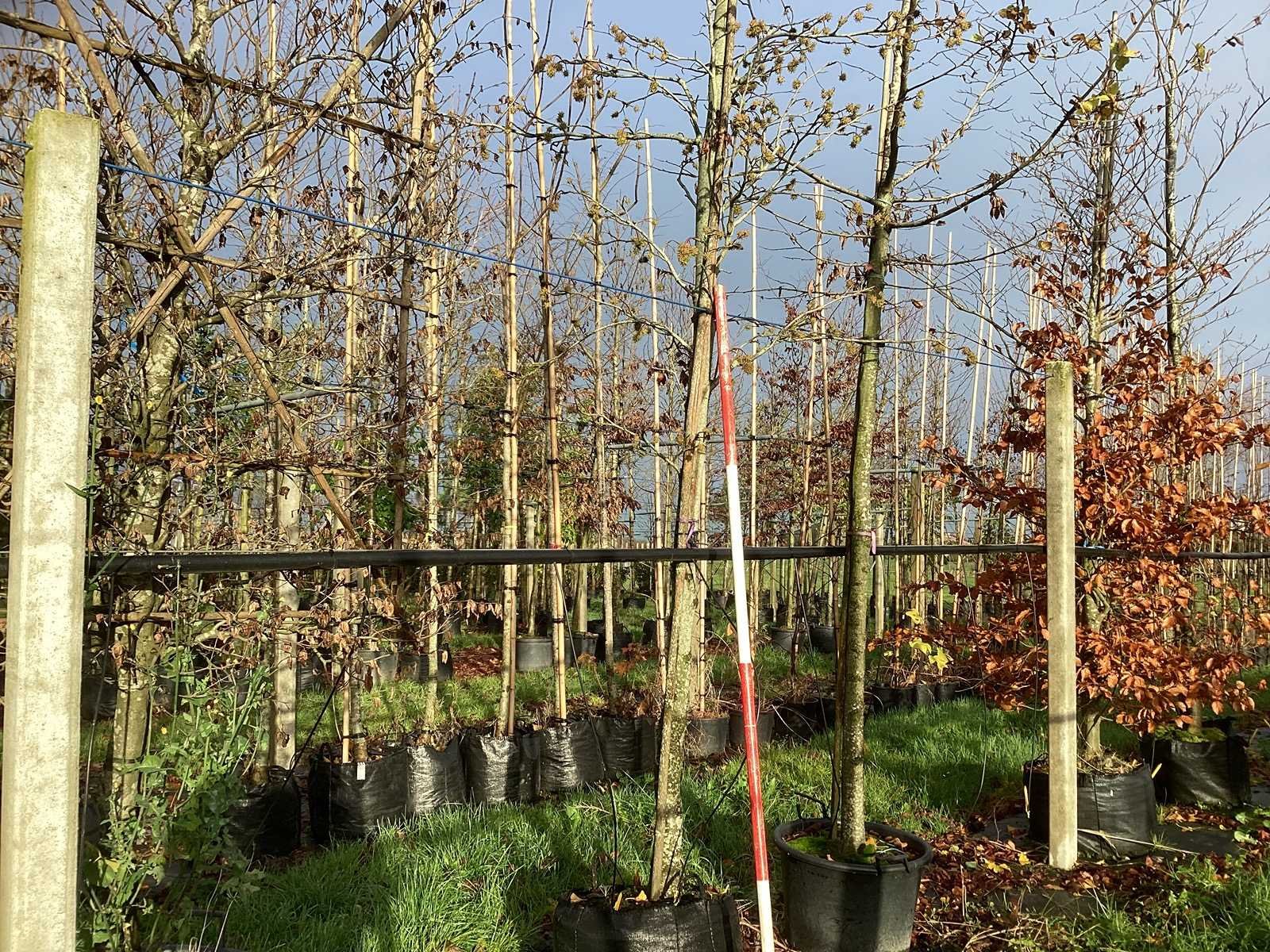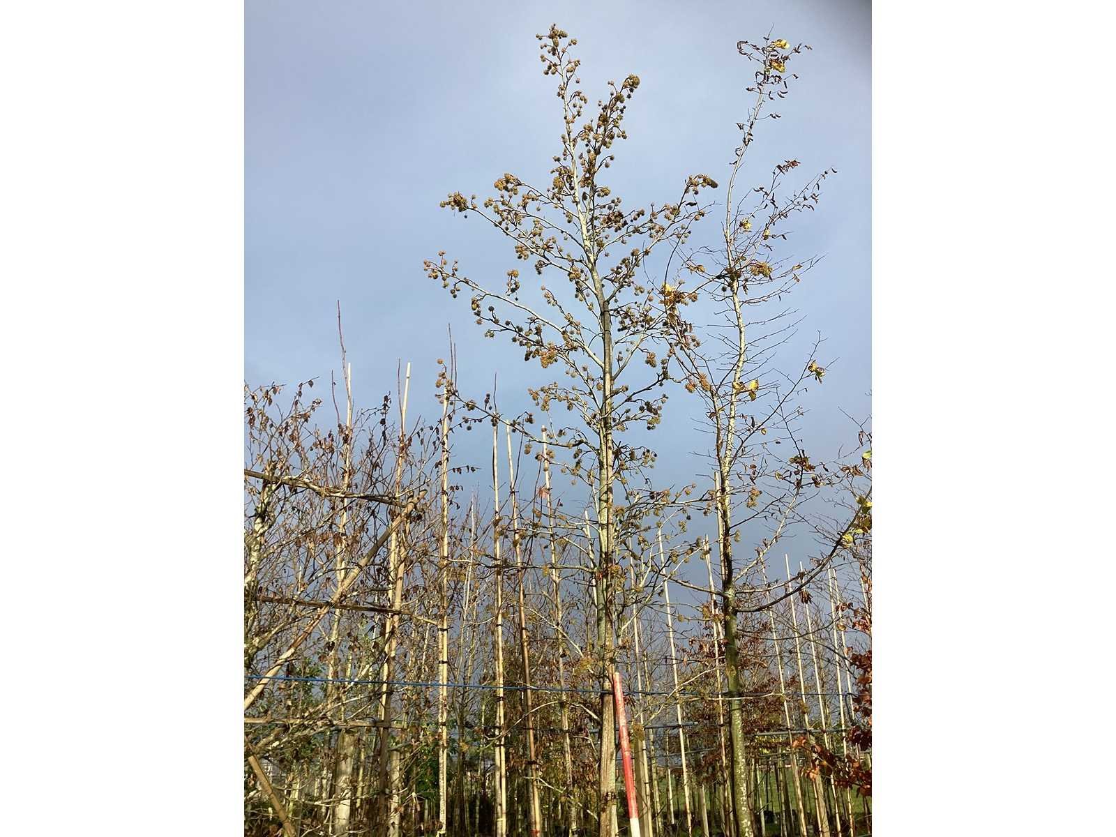 De kavels worden door ons verzameld en klaargelegd voor transport; Wilt u gebruik maken van de bezorgservice neem dan contact op via het emailadres info@groviatrees.com. Laat dit voor week 51 weten zodat we zo snel mogelijk uw planten kunnen laten bezorgen. Als tip, de bomen zitten nu in de winterrust dus wilt u graag weten wat de zomer- en de herfstkleuren zijn, kijk dan op internet daar staan hele mooie voorbeelden van de bomen. Type: Amberboom Latijnse benaming: Liquidambar styraciflua Worplesdon In pot: true Stamdikte: 18cm