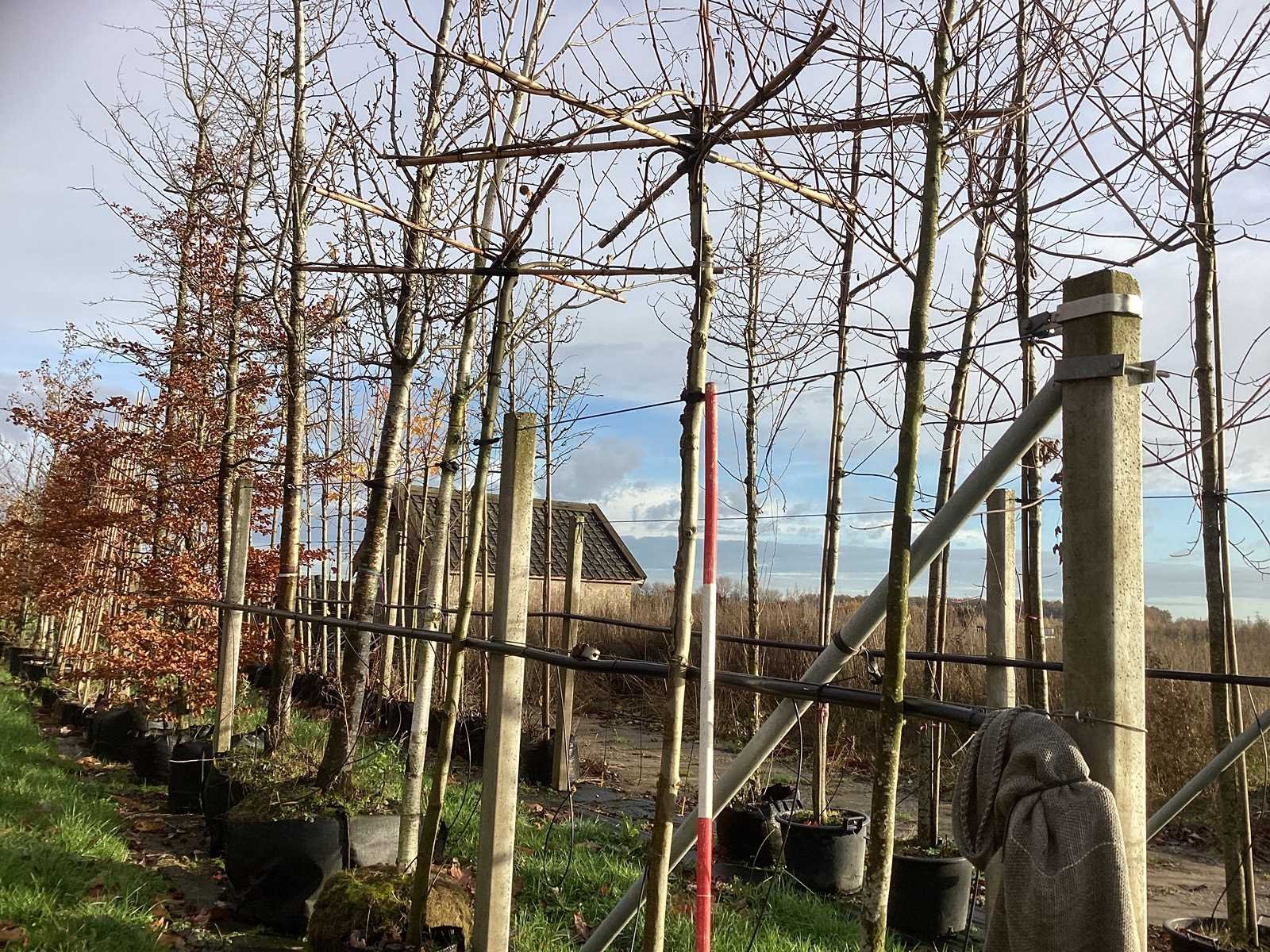 De kavels worden door ons verzameld en klaargelegd voor transport; Wilt u gebruik maken van de bezorgservice neem dan contact op via het emailadres info@groviatrees.com. Laat dit voor week 51 weten zodat we zo snel mogelijk uw planten kunnen laten bezorgen. Als tip, de bomen zitten nu in de winterrust dus wilt u graag weten wat de zomer- en de herfstkleuren zijn, kijk dan op internet daar staan hele mooie voorbeelden van de bomen. Type: Dakplataan Latijnse benaming: Platanus hispanica Hoogte ca.: 300cm In pot: true Stamdikte: 12cm