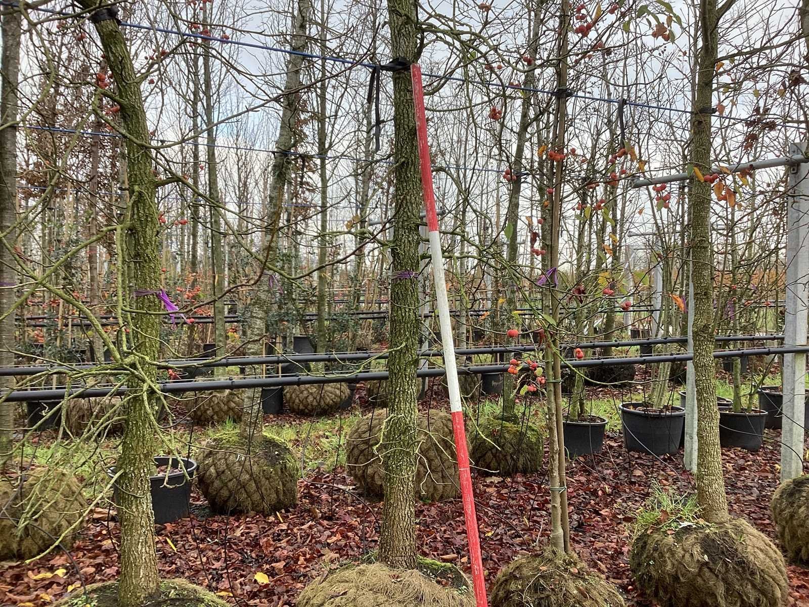 De kavels worden door ons verzameld en klaargelegd voor transport; Wilt u gebruik maken van de bezorgservice neem dan contact op via het emailadres info@groviatrees.com. Laat dit voor week 51 weten zodat we zo snel mogelijk uw planten kunnen laten bezorgen. Als tip, de bomen zitten nu in de winterrust dus wilt u graag weten wat de zomer- en de herfstkleuren zijn, kijk dan op internet daar staan hele mooie voorbeelden van de bomen. Type: Amberboom Latijnse benaming: Liquidambar styraciflua Hoogte ca.: 600cm Met kluit: true Stamdikte: 22cm