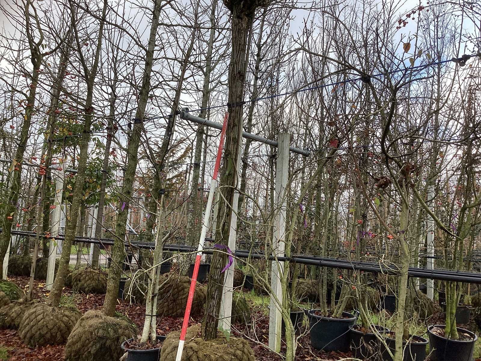 De kavels worden door ons verzameld en klaargelegd voor transport; Wilt u gebruik maken van de bezorgservice neem dan contact op via het emailadres info@groviatrees.com. Laat dit voor week 51 weten zodat we zo snel mogelijk uw planten kunnen laten bezorgen. Als tip, de bomen zitten nu in de winterrust dus wilt u graag weten wat de zomer- en de herfstkleuren zijn, kijk dan op internet daar staan hele mooie voorbeelden van de bomen. Type: Bolacacia Latijnse benaming: Robinia umbrucalifera Met kluit: true Stamdikte: 23cm