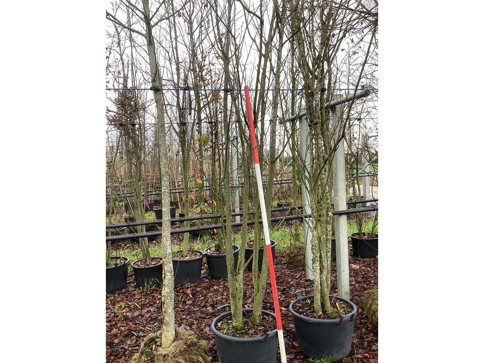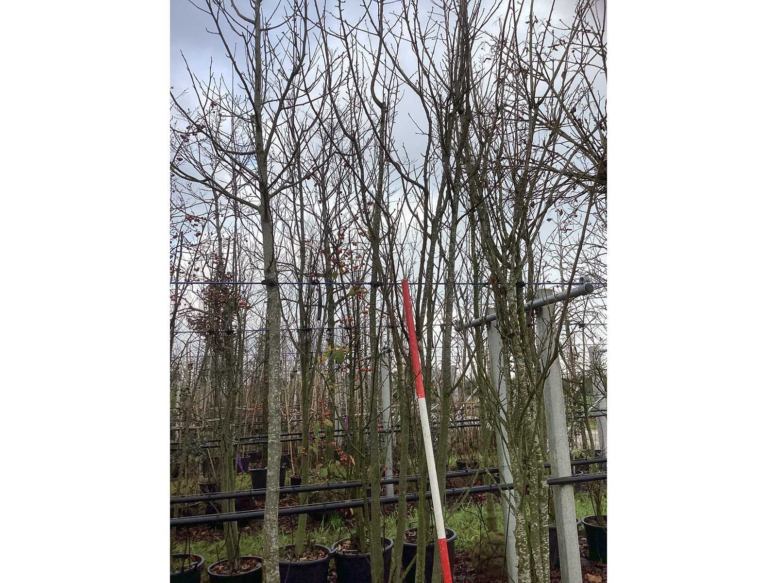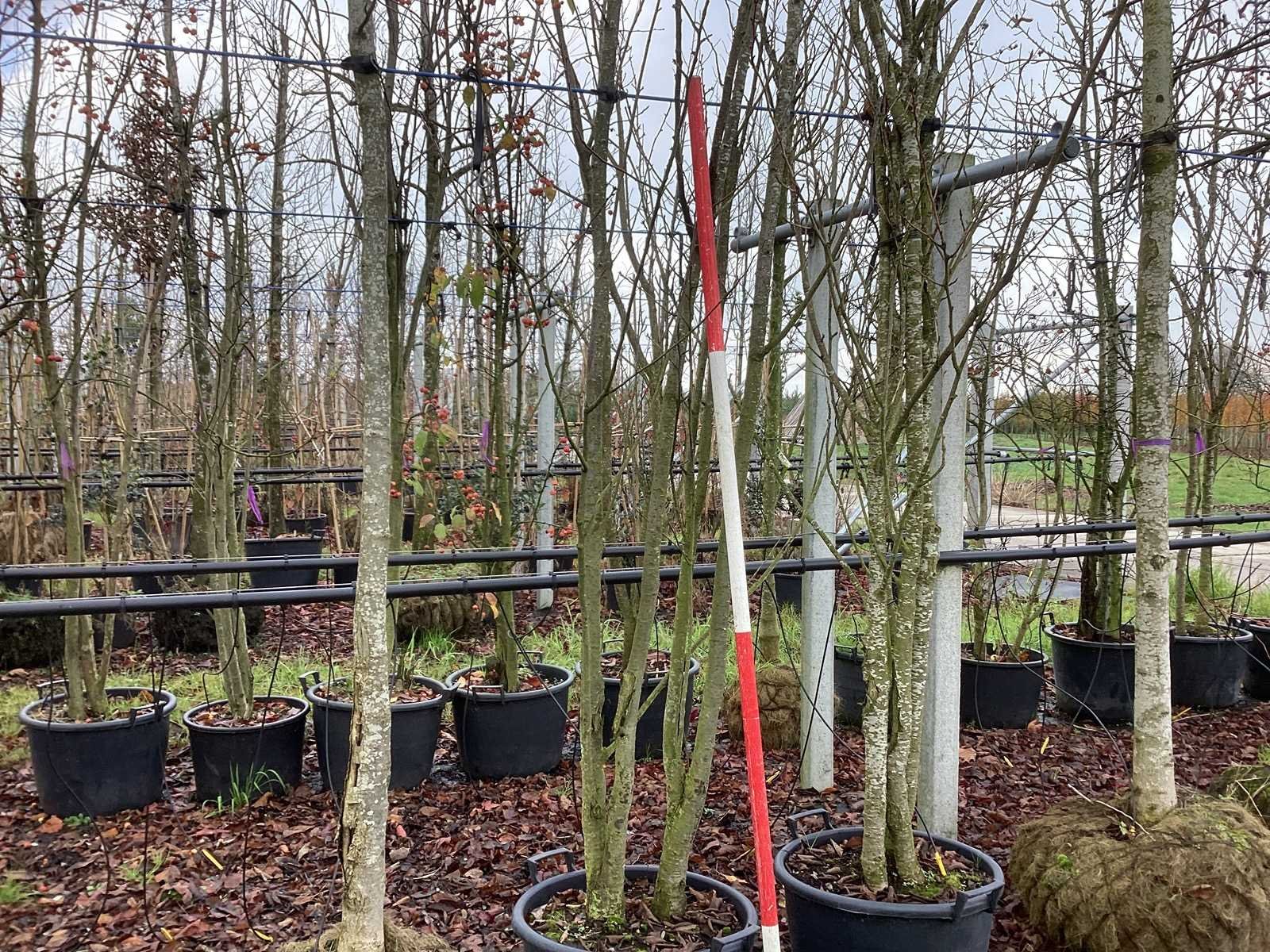 De kavels worden door ons verzameld en klaargelegd voor transport; Wilt u gebruik maken van de bezorgservice neem dan contact op via het emailadres info@groviatrees.com. Laat dit voor week 51 weten zodat we zo snel mogelijk uw planten kunnen laten bezorgen. Als tip, de bomen zitten nu in de winterrust dus wilt u graag weten wat de zomer- en de herfstkleuren zijn, kijk dan op internet daar staan hele mooie voorbeelden van de bomen. Type: Japanse Sierkers Latijnse benaming: Prunus kanzan Hoogte ca.: 500cm In pot: true Stamdikte: 10cm