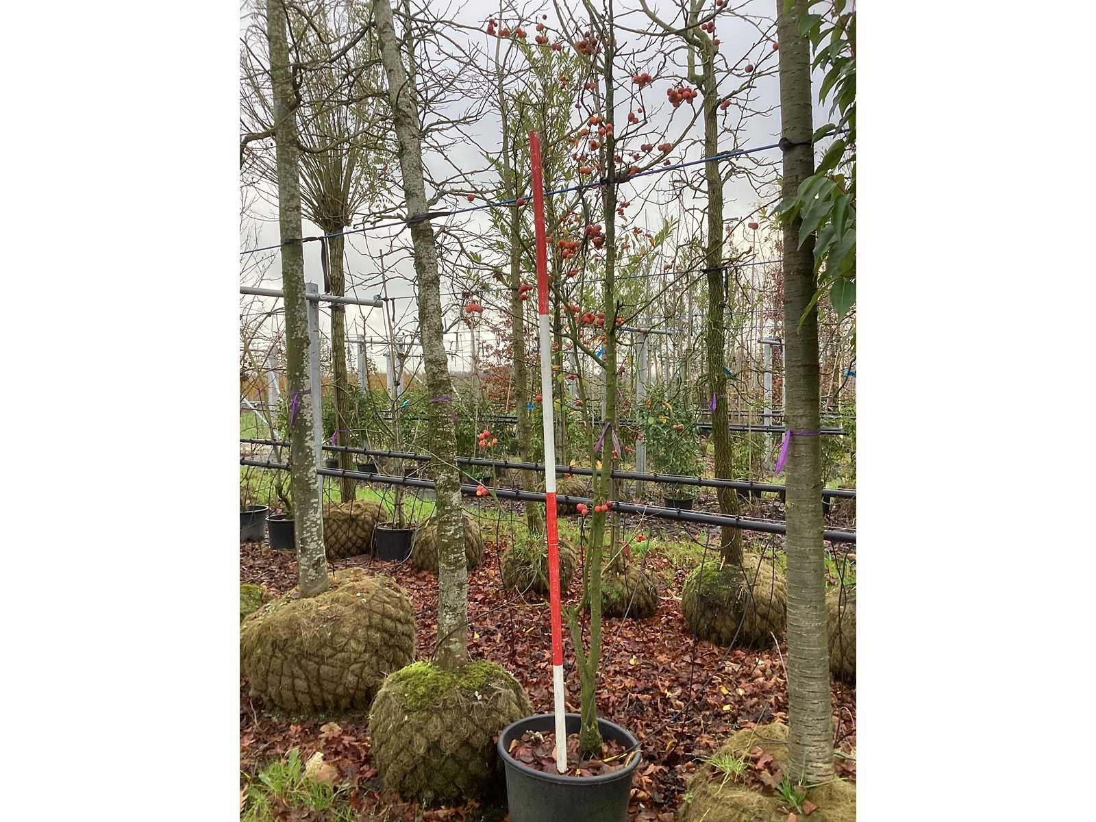 De kavels worden door ons verzameld en klaargelegd voor transport; Wilt u gebruik maken van de bezorgservice neem dan contact op via het emailadres info@groviatrees.com. Laat dit voor week 51 weten zodat we zo snel mogelijk uw planten kunnen laten bezorgen. Als tip, de bomen zitten nu in de winterrust dus wilt u graag weten wat de zomer- en de herfstkleuren zijn, kijk dan op internet daar staan hele mooie voorbeelden van de bomen. Type: Sierappel Latijnse benaming: Malus evereste Hoogte ca.: 250cm In pot: true Stamdikte: 5cm