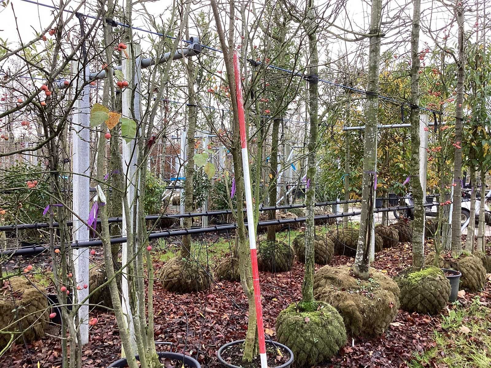 De kavels worden door ons verzameld en klaargelegd voor transport; Wilt u gebruik maken van de bezorgservice neem dan contact op via het emailadres info@groviatrees.com. Laat dit voor week 51 weten zodat we zo snel mogelijk uw planten kunnen laten bezorgen. Als tip, de bomen zitten nu in de winterrust dus wilt u graag weten wat de zomer- en de herfstkleuren zijn, kijk dan op internet daar staan hele mooie voorbeelden van de bomen. Type: Japanse sierkers Latijnse benaming: Prunus kanzan Hoogte ca.: 350cm In pot: true Stamdikte: 6cm
