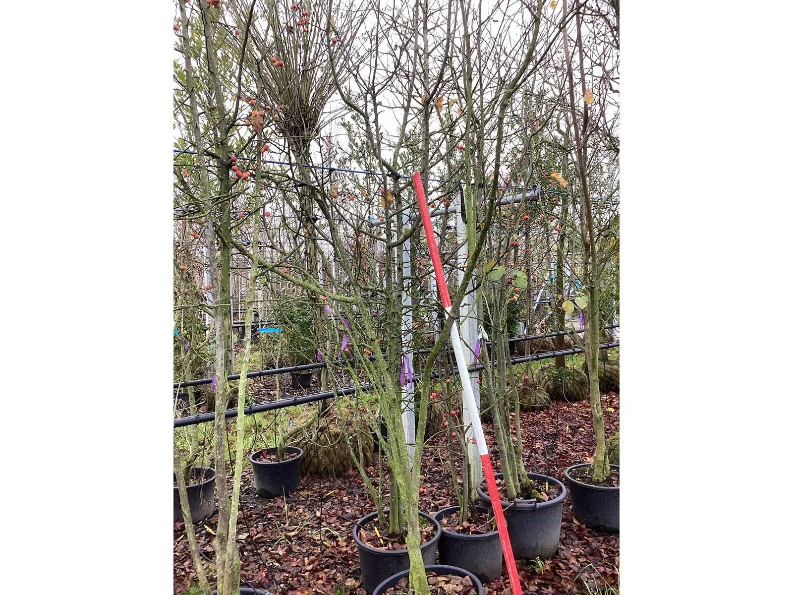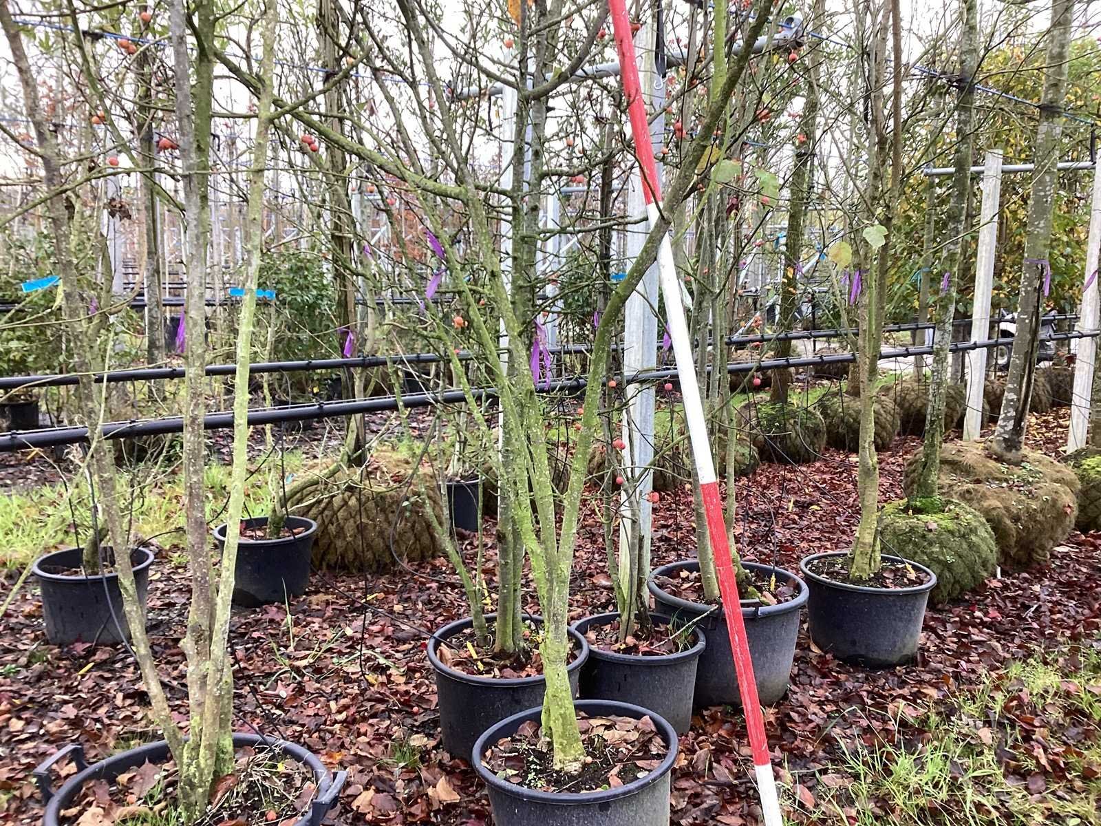 De kavels worden door ons verzameld en klaargelegd voor transport; Wilt u gebruik maken van de bezorgservice neem dan contact op via het emailadres info@groviatrees.com. Laat dit voor week 51 weten zodat we zo snel mogelijk uw planten kunnen laten bezorgen. Als tip, de bomen zitten nu in de winterrust dus wilt u graag weten wat de zomer- en de herfstkleuren zijn, kijk dan op internet daar staan hele mooie voorbeelden van de bomen. Type: Wilde Lijsterbes Latijnse benaming: Sorbus aucuparia Hoogte ca.: 350cm In pot: true Stamdikte: 6cm