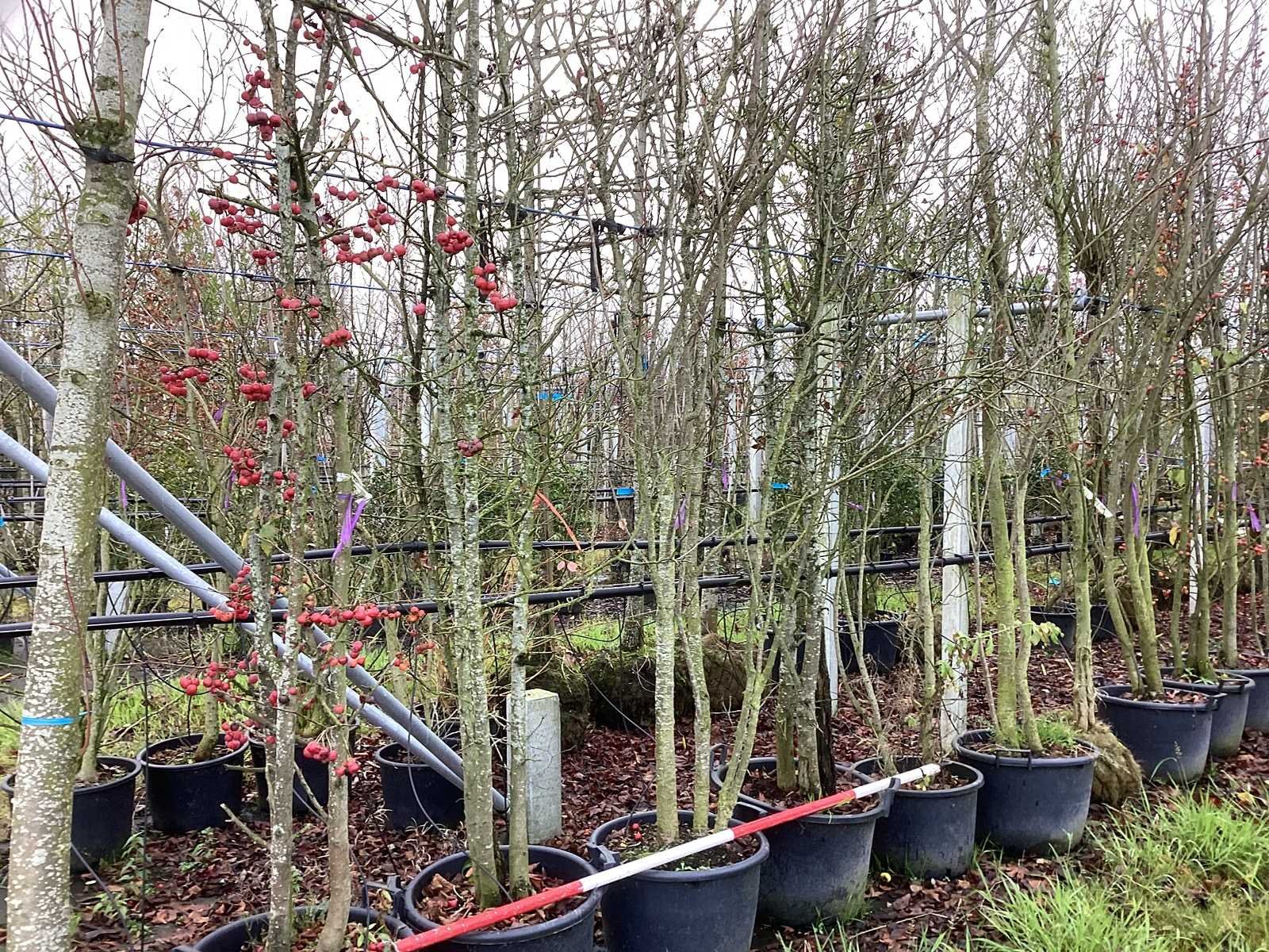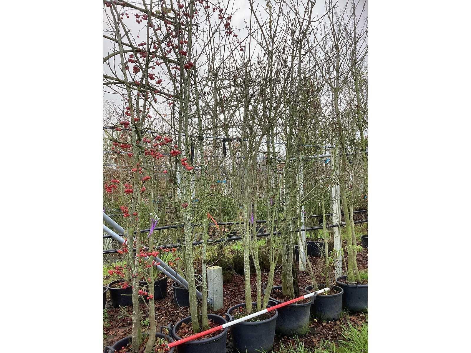 De kavels worden door ons verzameld en klaargelegd voor transport; Wilt u gebruik maken van de bezorgservice neem dan contact op via het emailadres info@groviatrees.com. Laat dit voor week 51 weten zodat we zo snel mogelijk uw planten kunnen laten bezorgen. Als tip, de bomen zitten nu in de winterrust dus wilt u graag weten wat de zomer- en de herfstkleuren zijn, kijk dan op internet daar staan hele mooie voorbeelden van de bomen. Type: Diverse soorten Latijnse benaming: Diverse Soorten Hoogte ca.: 400cm In pot: true Stamdikte: 6cm