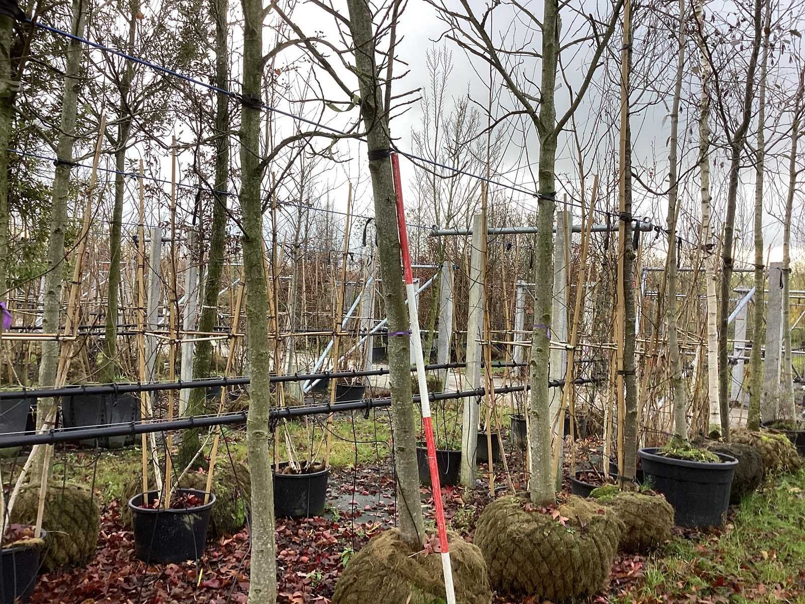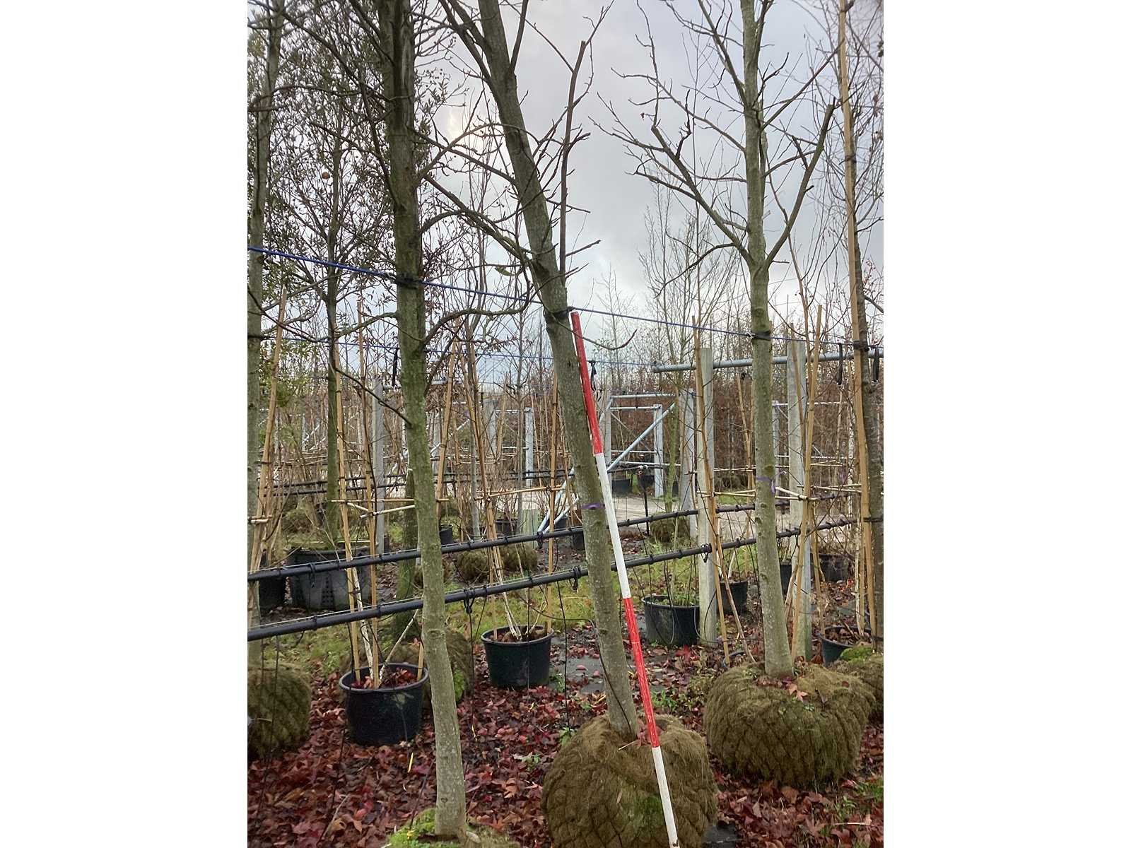 De kavels worden door ons verzameld en klaargelegd voor transport; Wilt u gebruik maken van de bezorgservice neem dan contact op via het emailadres info@groviatrees.com. Laat dit voor week 51 weten zodat we zo snel mogelijk uw planten kunnen laten bezorgen. Als tip, de bomen zitten nu in de winterrust dus wilt u graag weten wat de zomer- en de herfstkleuren zijn, kijk dan op internet daar staan hele mooie voorbeelden van de bomen. Type: Amberboom Latijnse benaming: Liquidambar styraciflua Hoogte ca.: 700cm Met kluit: true Stamdikte: 24cm