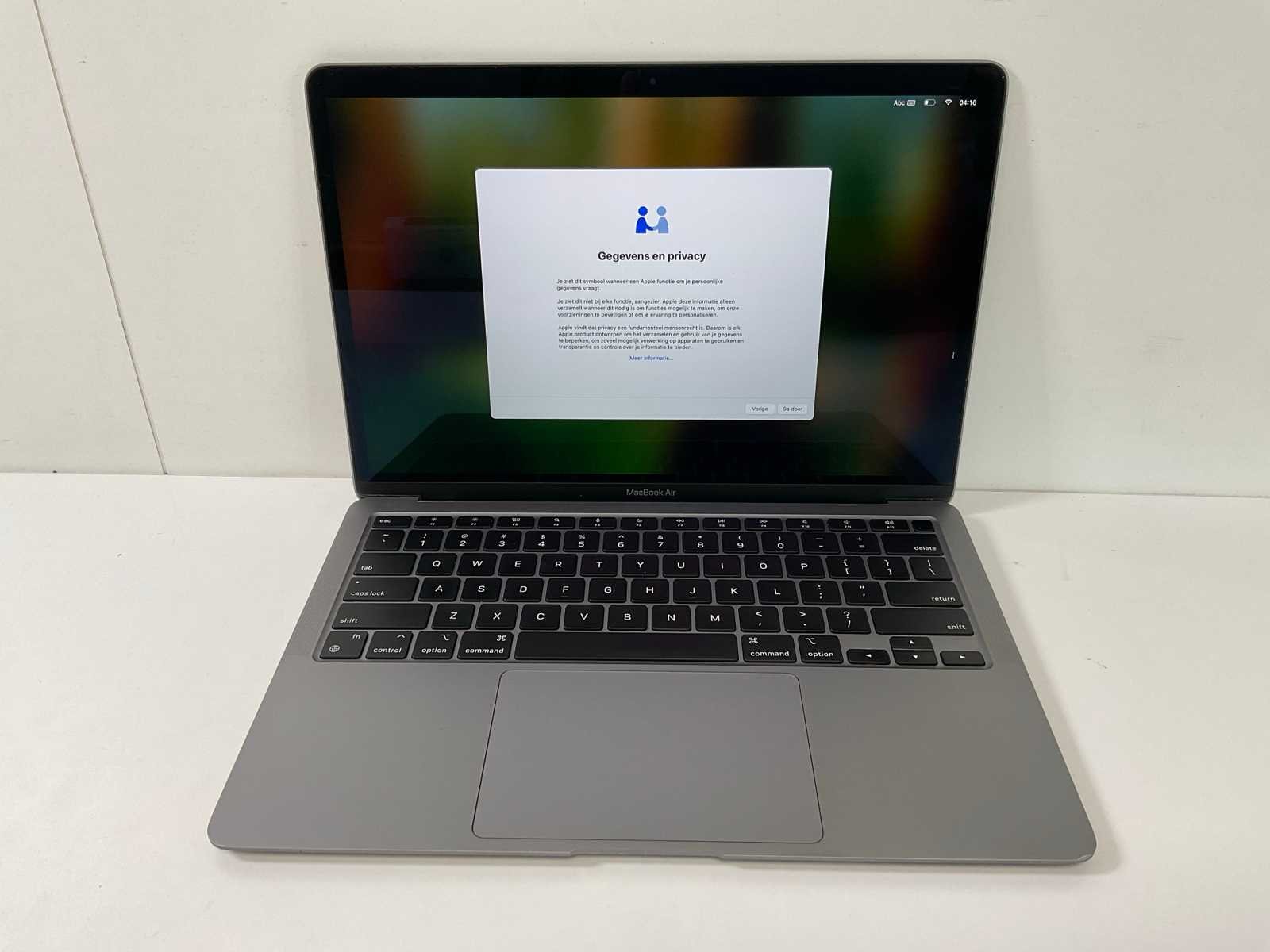 MacBook Air 13.3”, Apple M1, 8 GB RAM, 256 GB SSD Laptop; - Lightly Spots - Excl. Charger. Merk: Apple Processor type: Apple M1 8-core Processorsnelheid Ghz: 2.1 RAM Geheugen: 8GB Totale opslagcapaciteit: 256GB Type datadrager: SSD Type videokaart: Apple GPU 7-core Zonder adapter: true Beeldscherm type: IPS Beelddiagonaal: 13'' Wifi: true Bluetooth: true USB-Type: Type C USB poorten: 2 Webcam: true