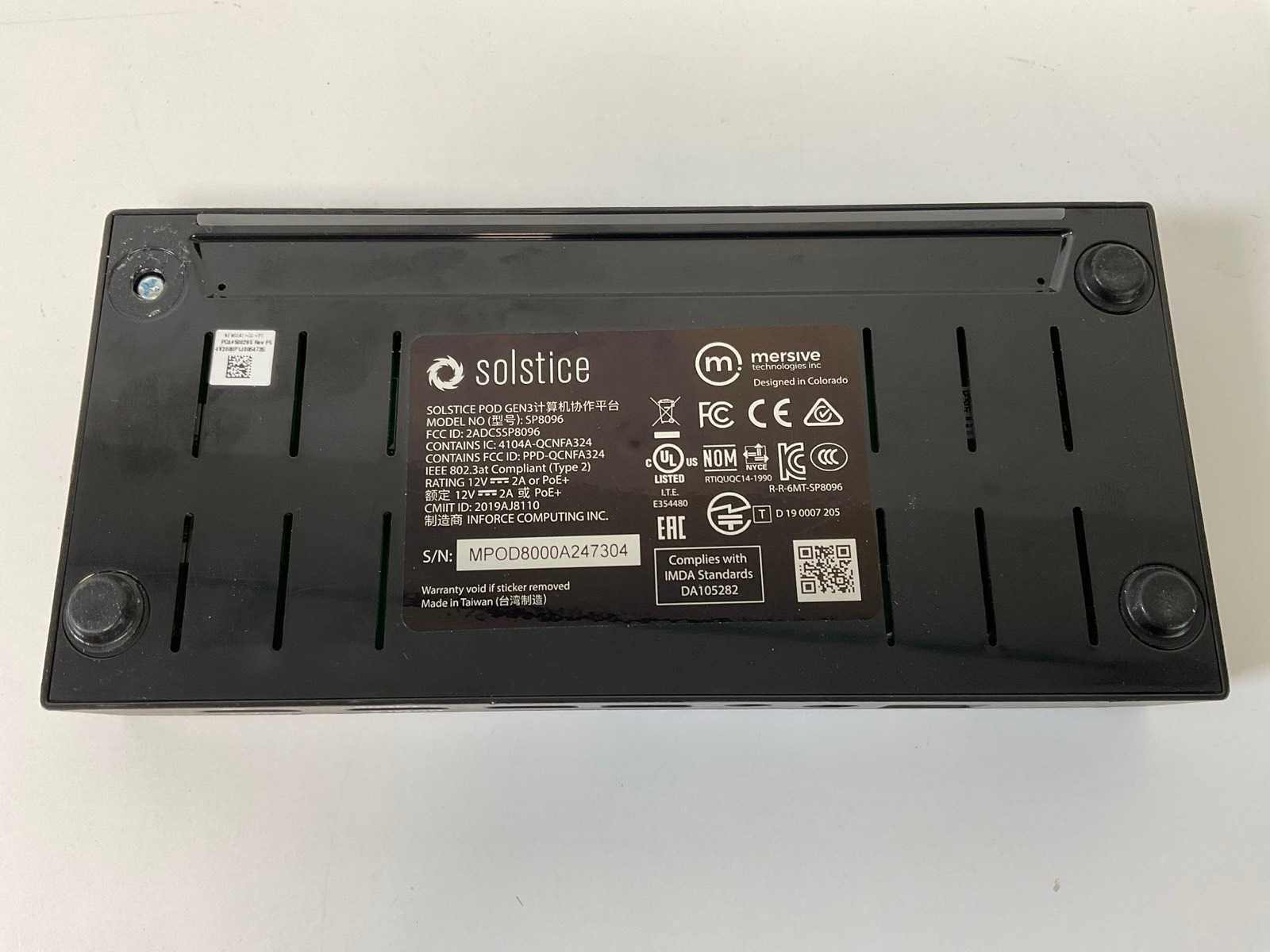 (SP8096), POD Gen 3 Wireless Presentation System; - Not Tested, - Excl. Power and Connection Cables. Merk: Mersive - Solstice