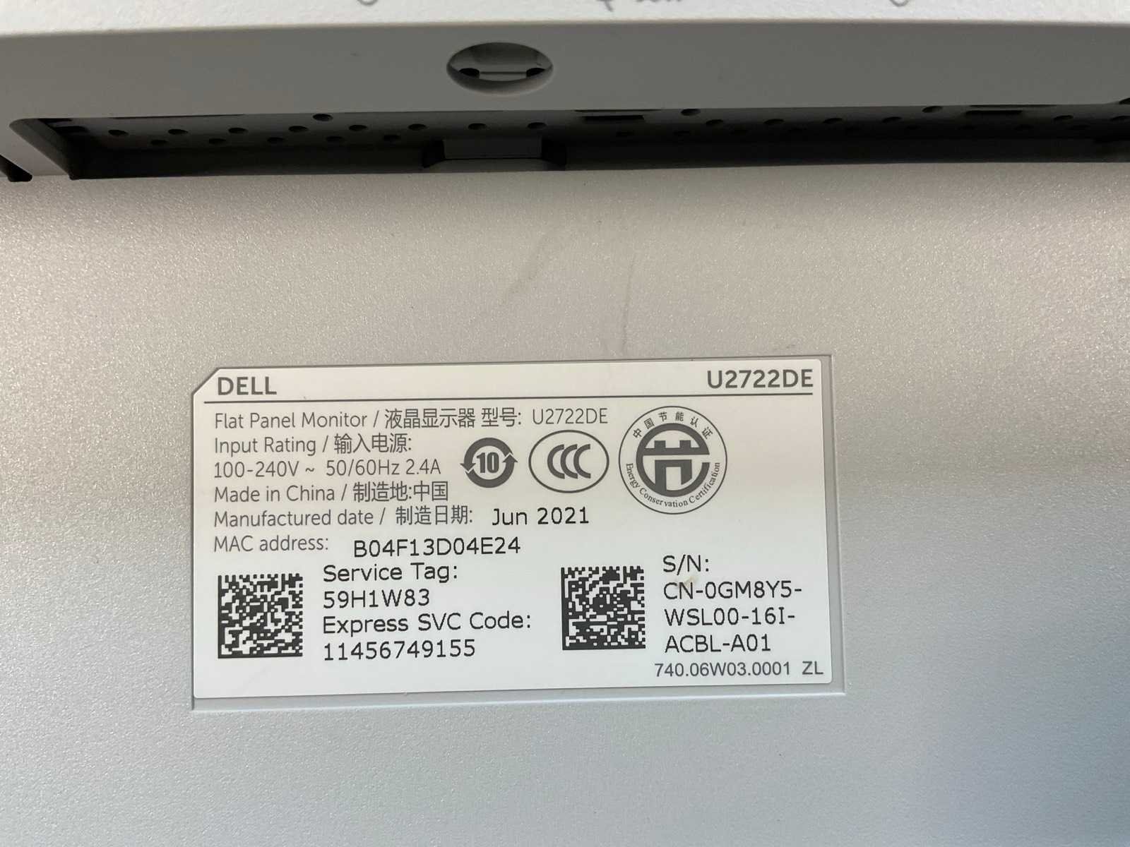 Dell (u2722de) 27”, 2560x1440 (qhd) ips monitor