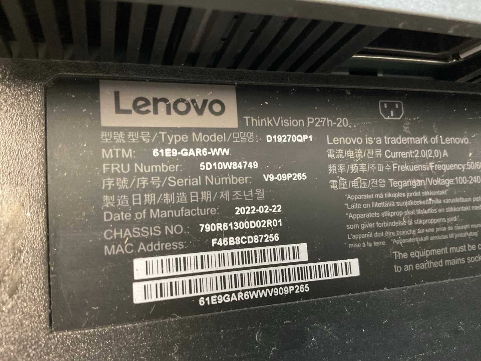 Lenovo (p27h-20) 27”, 2560x1440 (qhd) ips monitor