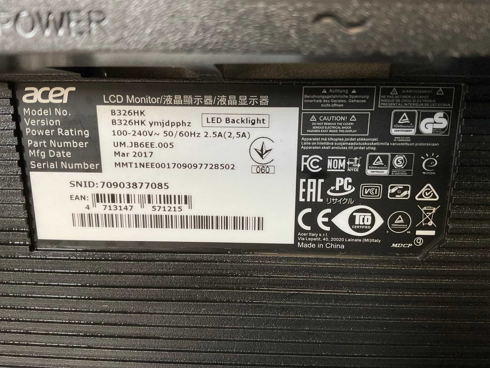 Acer (b326hk) 32”, 3840x2160 (uhd) ips monitor