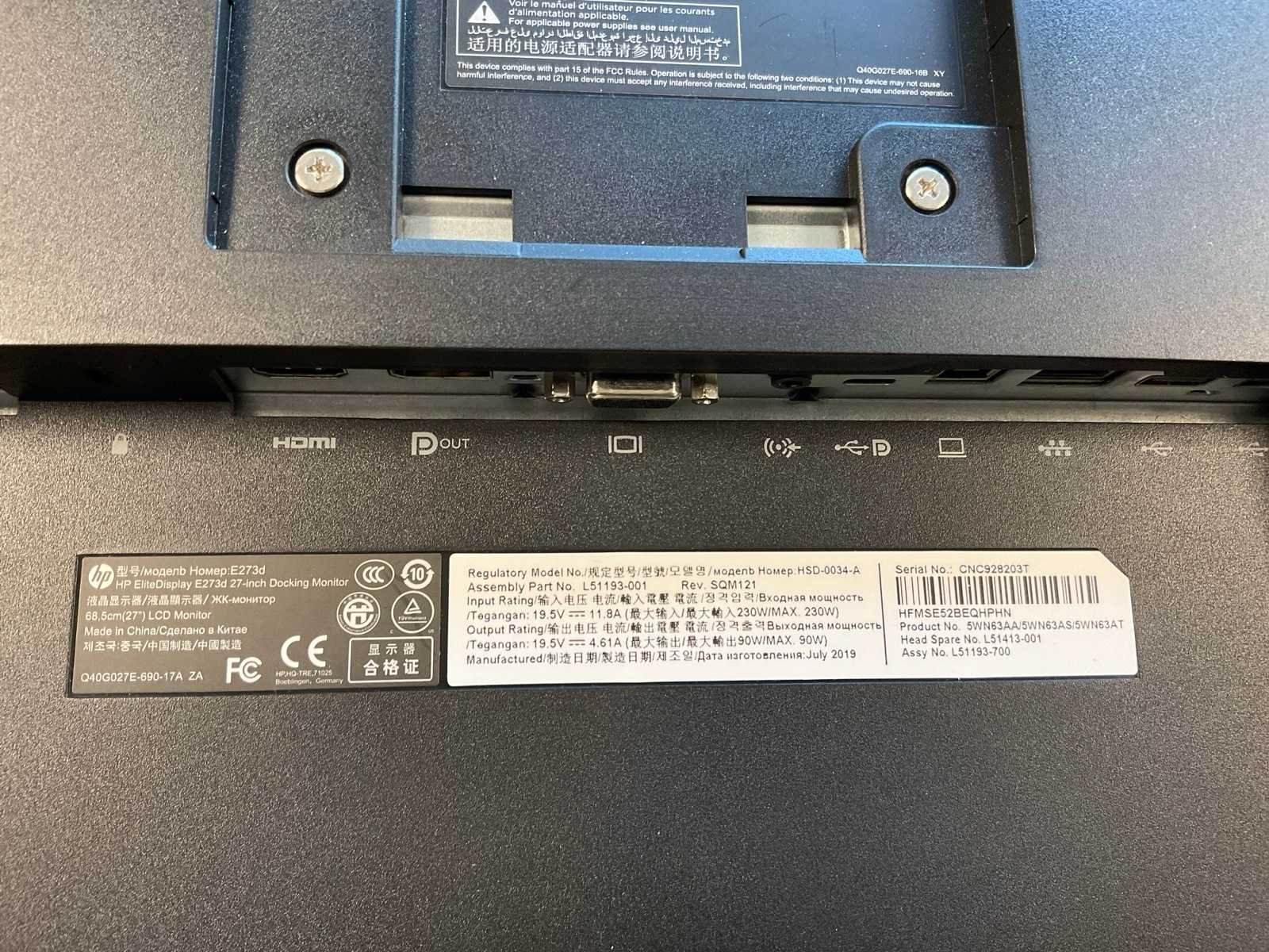 Hp (e273d) 27”, 1920x1080 (fhd) ips monitor