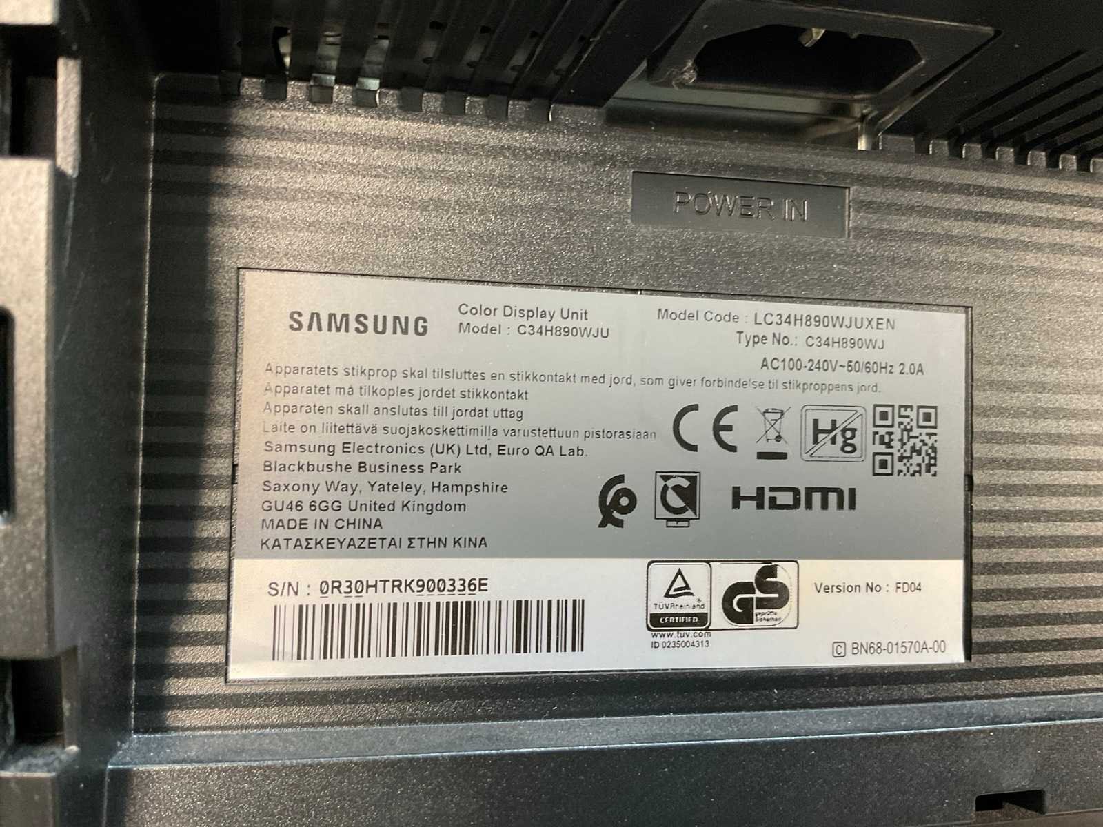 Samsung (c34h890wju) 34”, 3440x1440 (uwqhd) lcd curved monitor;