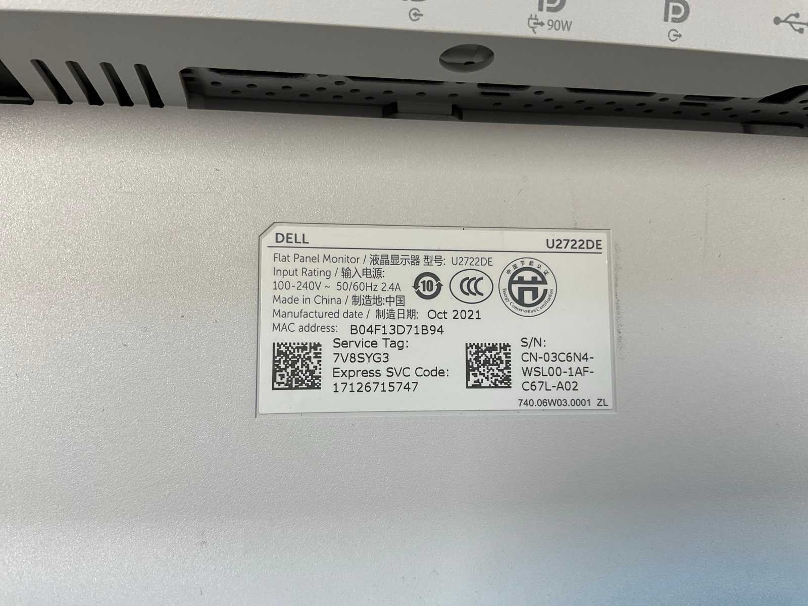 Dell (u2722de) 27”, 2560x1440 (qhd) ips monitor