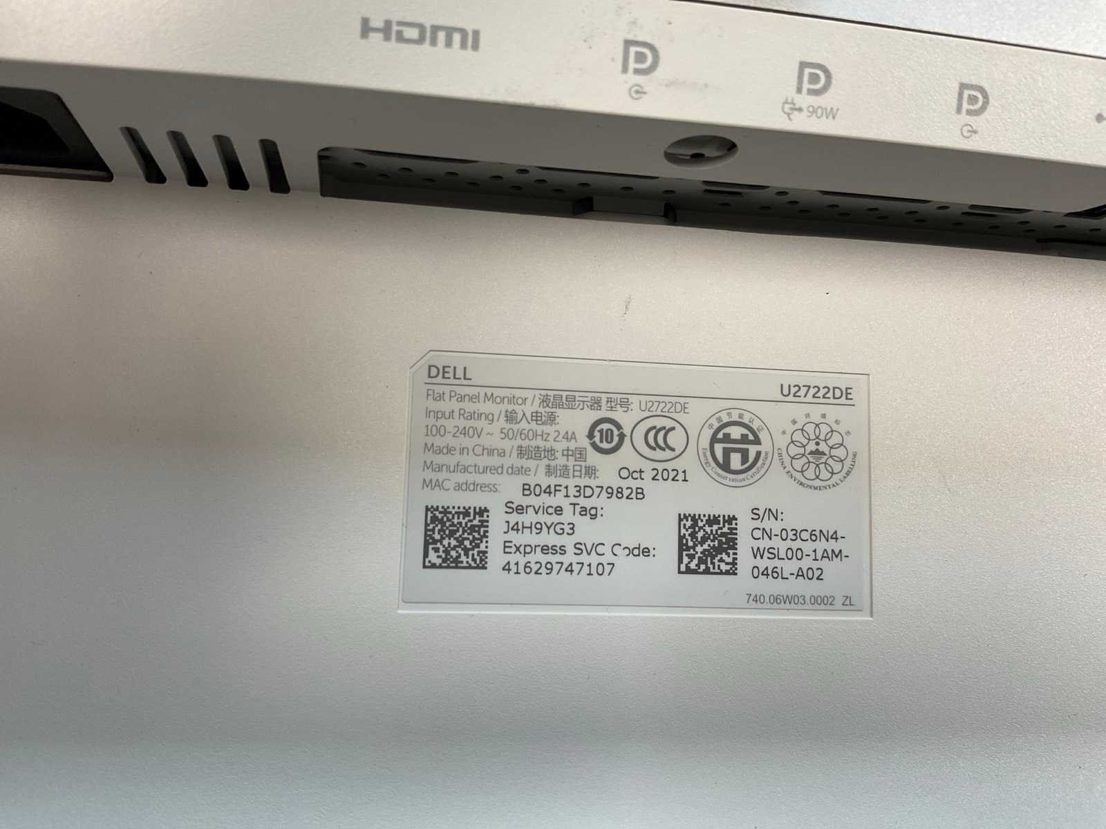 Dell (u2722de) 27”, 2560x1440 (qhd) ips monitor