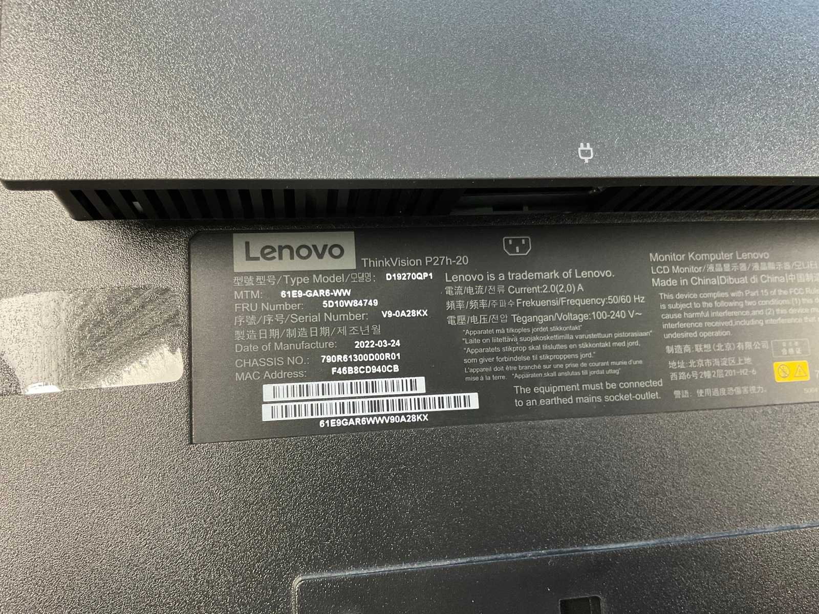Lenovo (p27h-20) 27”, 2560x1440 (qhd) ips monitor