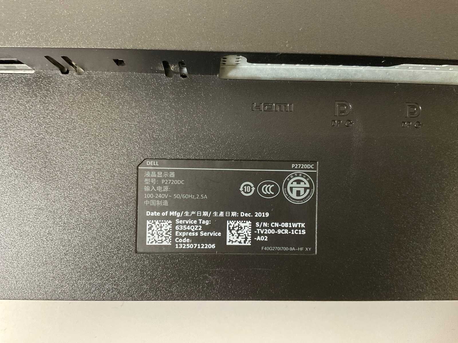 Dell (u2720dc) 27”, 2560x1440 (qhd) ips monitor