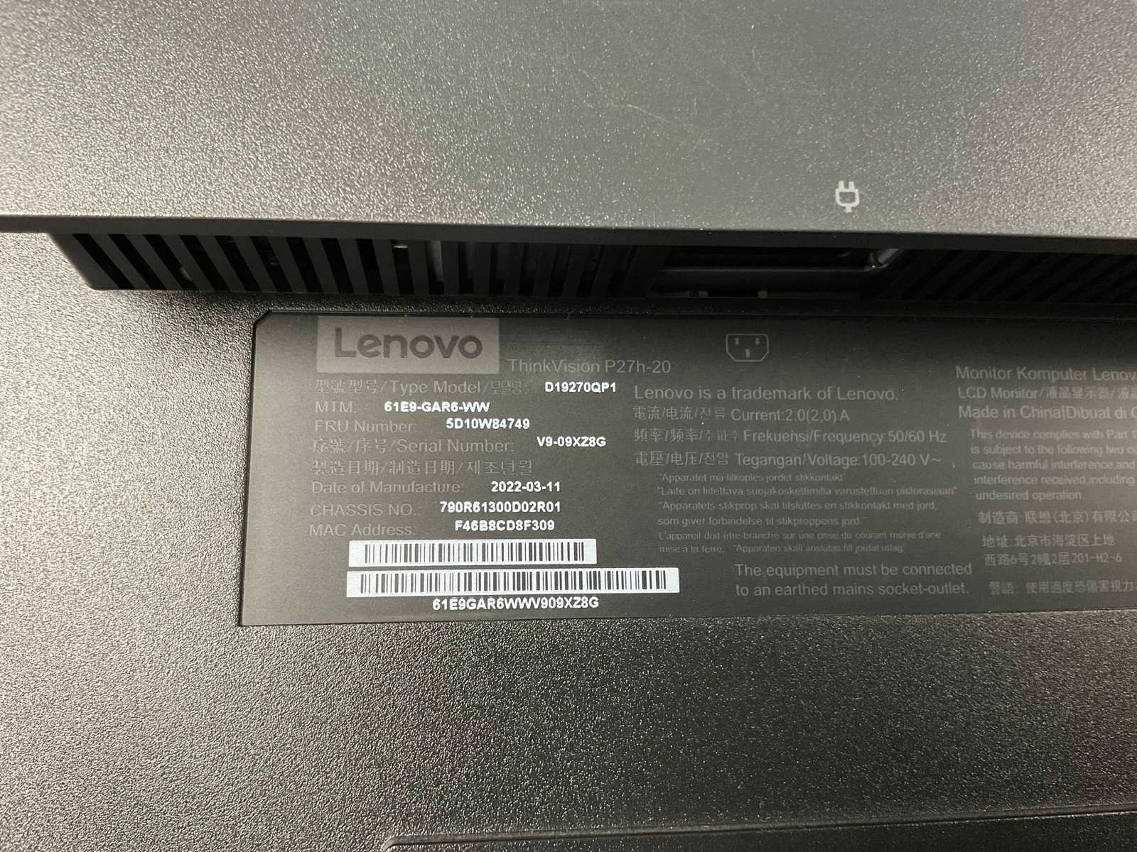 Lenovo (p27h-20) 27”, 2560x1440 (qhd) ips monitor