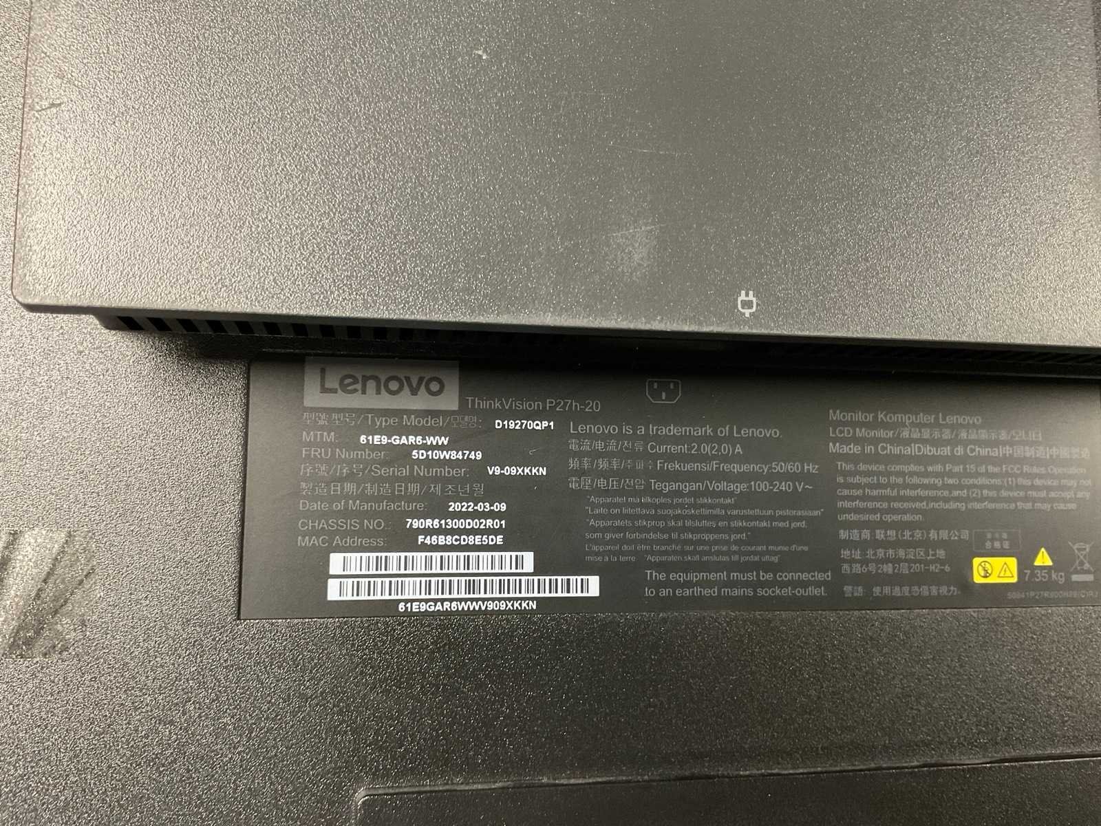 Lenovo (p27h-20) 27”, 2560x1440 (qhd) ips monitor