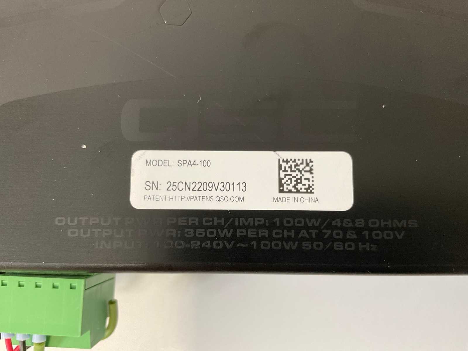 (SPA4-100), 4-Channel Power Amplifier; - Tested For Power, - Excl. Power and Connection Cables. Merk: QSC