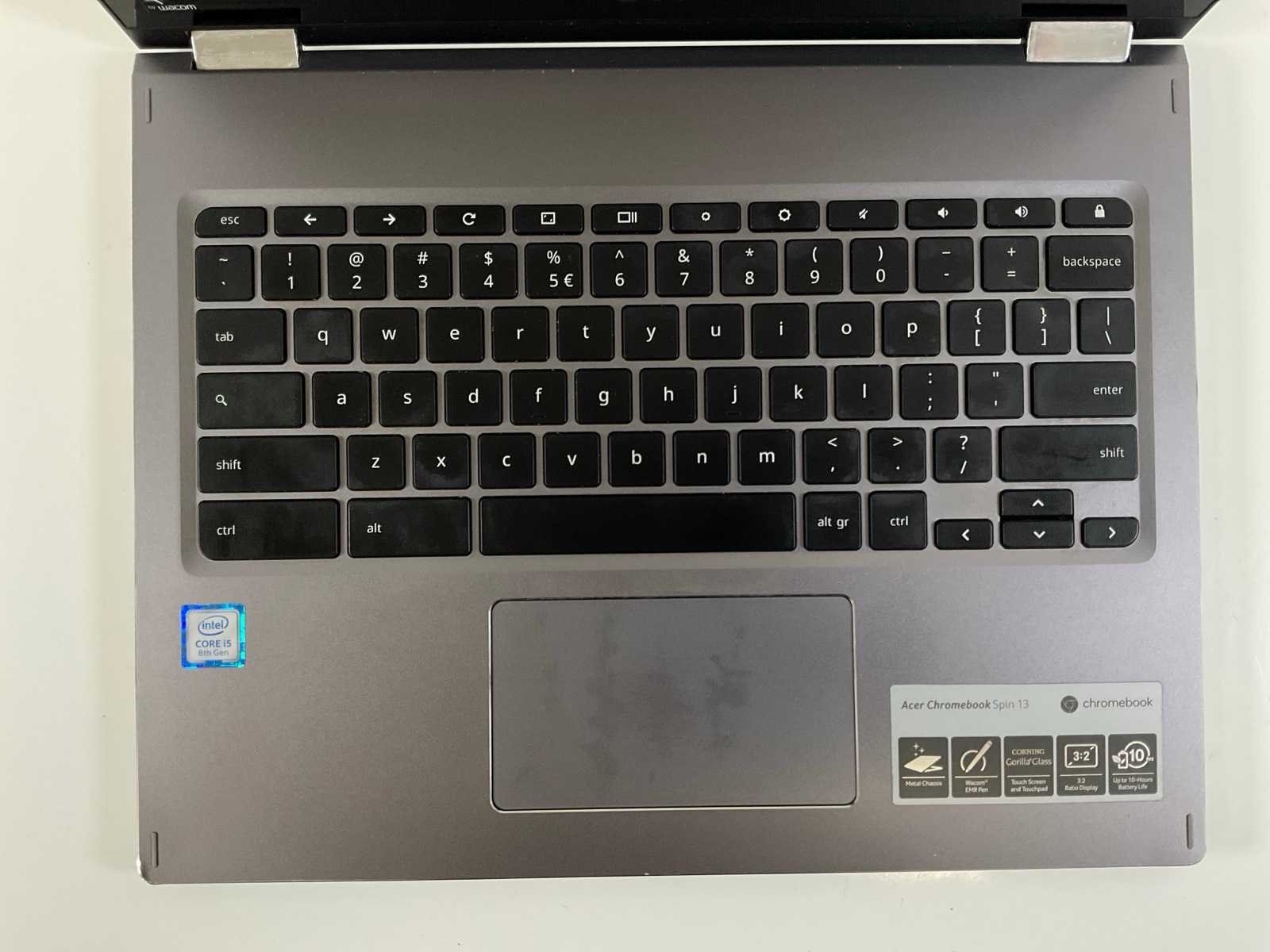 Spin 13 13.5”, Core(TM) i5 8th Gen, 8 GB RAM, 64 GB SSD ChromeBooks; - Excl. chargers. Merk: Acer Processor type: Intel(R) Core(TM) i5-8250U RAM Geheugen: 8GB RAM Geheugen Type: DDR3 Totale opslagcapaciteit: 64GB Type datadrager: SSD Zonder adapter: true Touchscreen: true Beeldscherm type: IPS Resolutie: 1920x1080 Beelddiagonaal: 13.5'' Wifi: true Bluetooth: true USB-Type: Type A,C USB poorten: 3 Webcam: true
