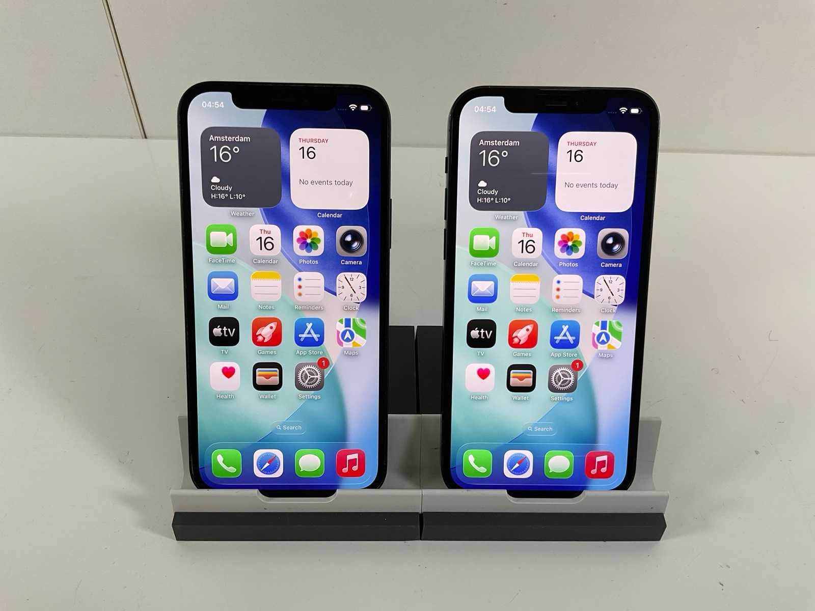 IPhone 12 - 128 GB - Black; - 1x Screen scratched, - 1x Case lightly damaged, - Excl. chargers. Merk: Apple