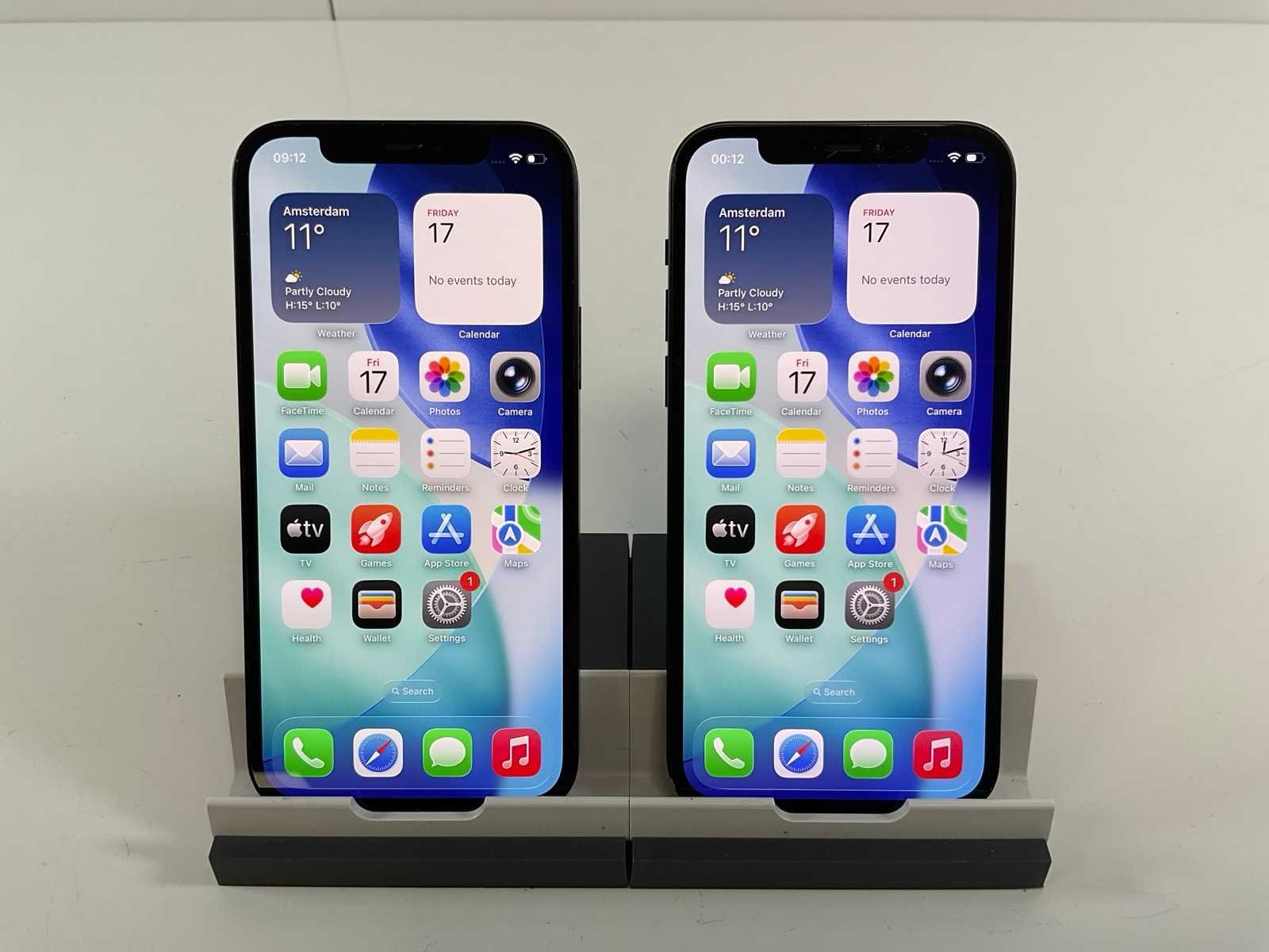 IPhone 12 - 128 GB - Black; - 1x Scratches on screen, - 1x Case lightly damaged, - Excl. chargers. Merk: Apple
