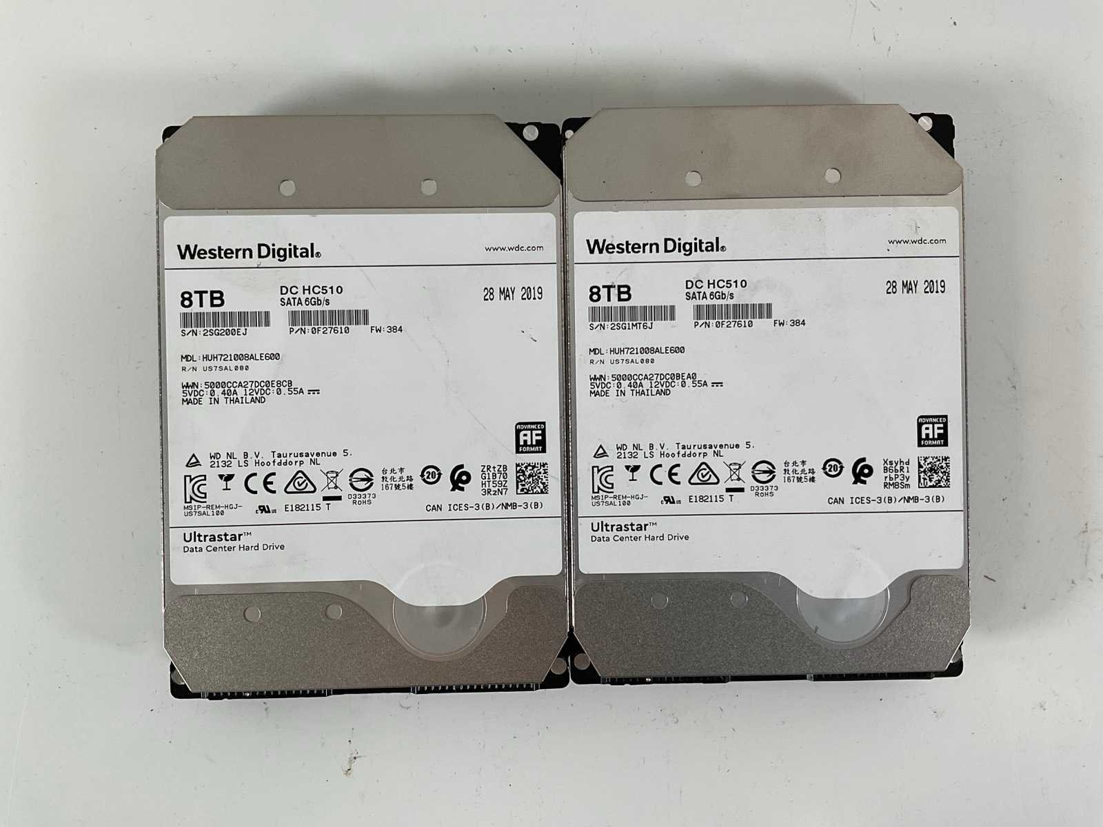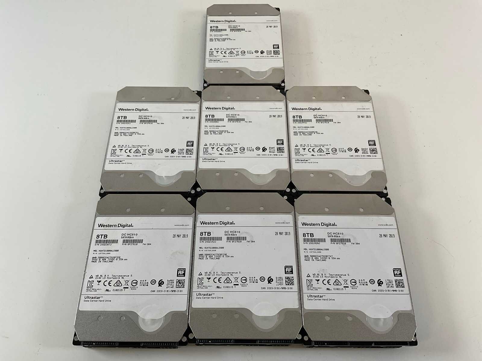 Western digital (huh721008ale600) 8 tb sata hdds (7x)