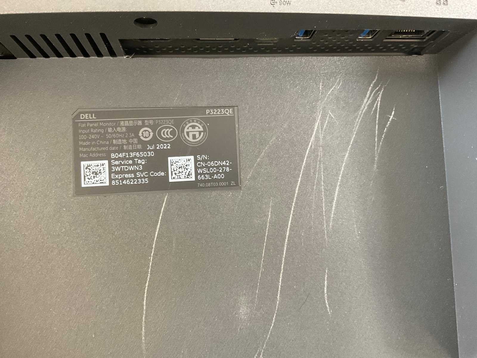 (P3225QE) 32”, 3840x2160 (UHD) IPS Monitor; - Case scratched, - Excl. Power Cable. Merk: Dell Displaypoort: 1 HDMI: 1 Beeldscherm type: IPS Resolutie: 3840x2160 Beelddiagonaal: 32''