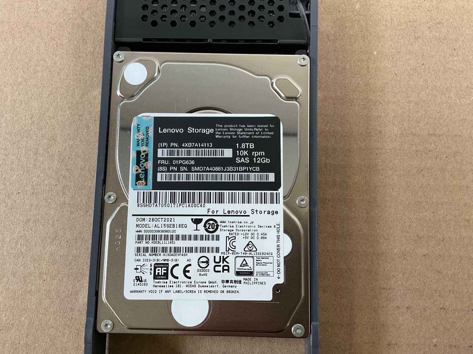 ThinkSystem (DE240S) - 23x 1,8 TB Lenovo (ST1800MM0129) - 1x 1.8 TB Lenovo (AL15SEB18EQ) 2U24 SFF Expansion Enclosure; - Excl. power and connection cables. Merk: Lenovo