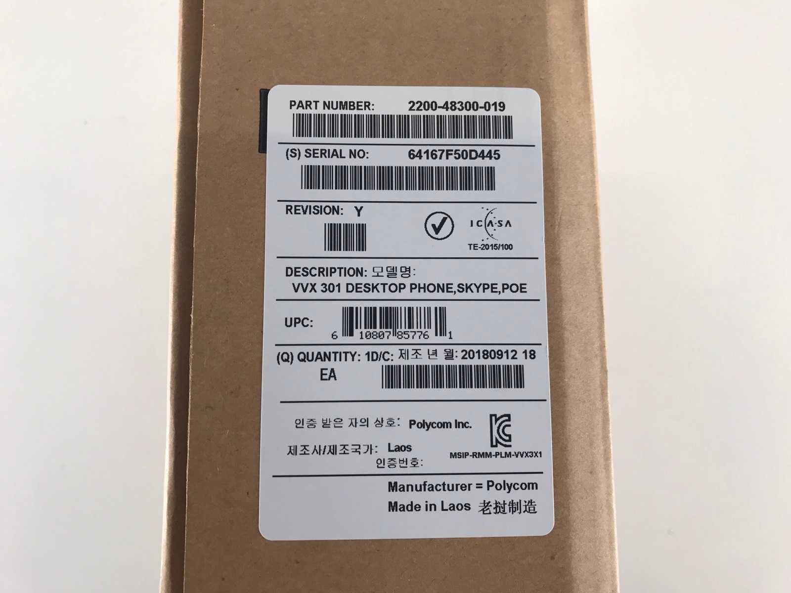 (VVX 301) Desktop Phones - 2200-48300-019 (New); - New In Box. Merk: Poycom