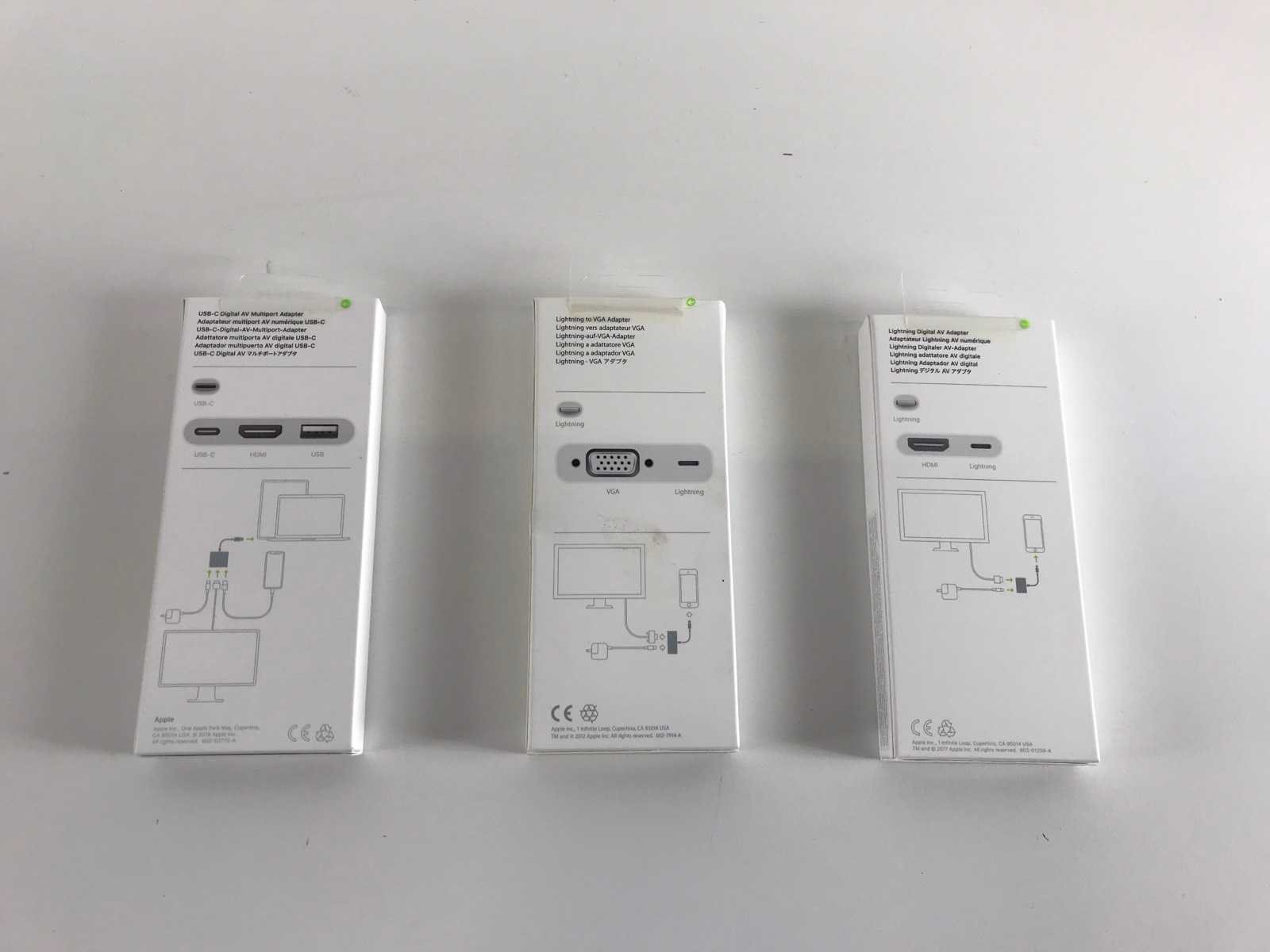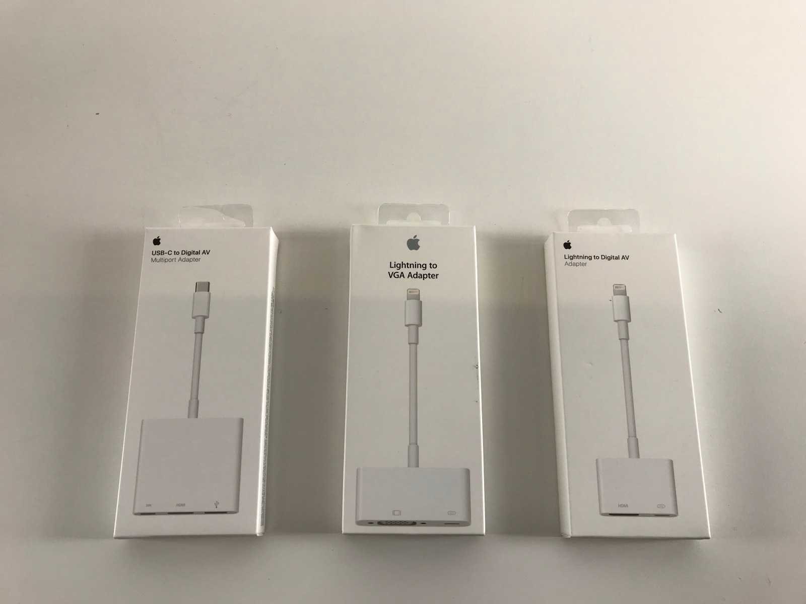 Apple Mix Adapters (New) - Check Description; - 10x USB-C to Digital AV, - 13x Lightning to VGA Adapters, - 31x Lightning to Digital AV, - New In Open Box. Merk: Apple Mix Adapters (New) - Check Description