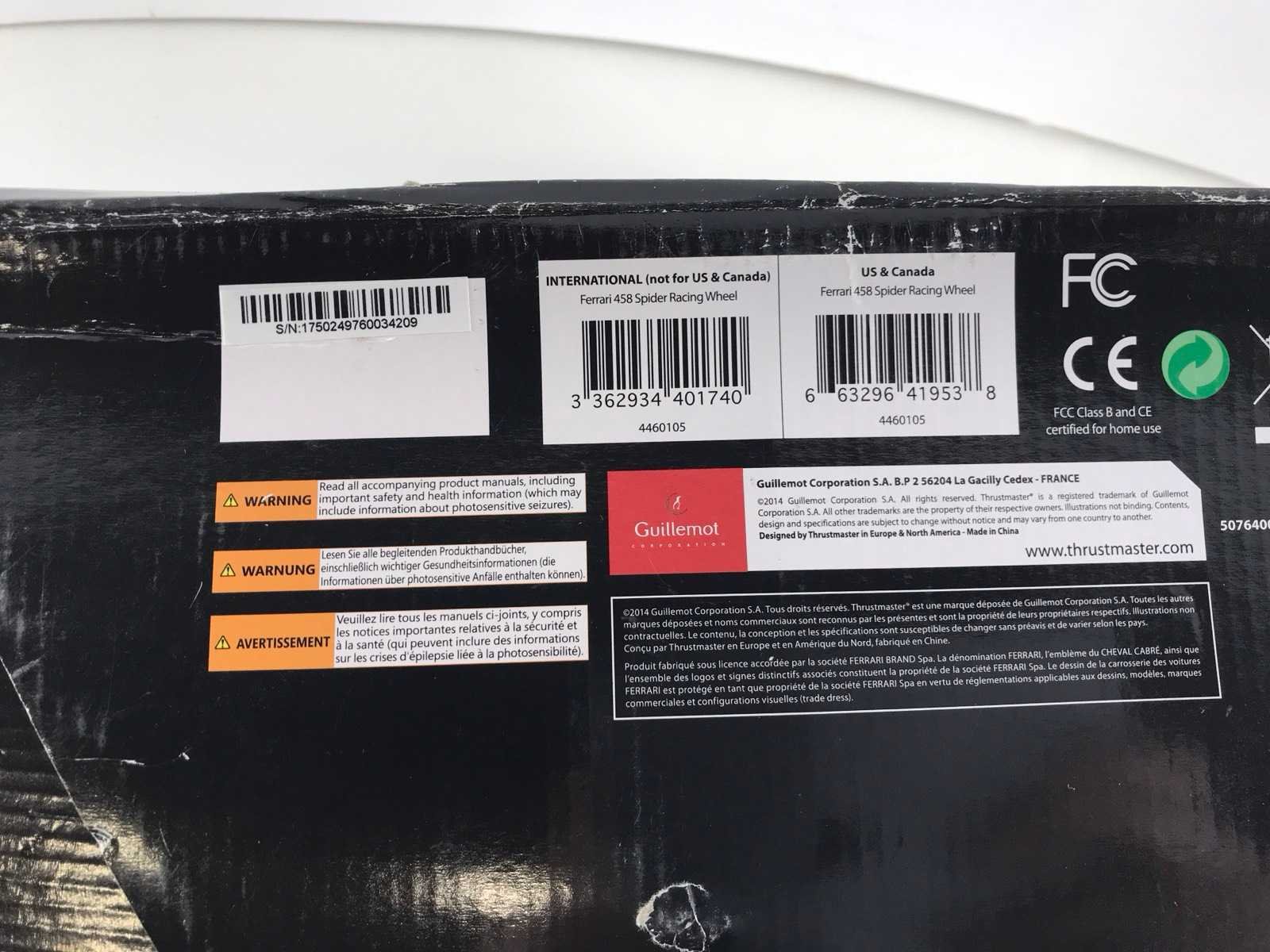 Mixed Model of Defect Racing wheels for Xbox One, Windows & Playstation - Check Description; These items are untested and defect, sold for parts or repair. Great for spare parts, DIY repairs or collector restoration projects. Some units may have cosmetic wear, missing cables or calibration issues; but overall they are in decent physical condition. Models (All Thrustmaster): - 6x TMX Pro Force Feedback For Xbox One/PC, - 2x TX Force Feedback Leather Edition For Xbox One/PC, - 5x T300 RS GT Edition For PS3/PS4, - 3x Ferrari 458 Spider Racing Wheel for Xbox One, - 1x T.16000M FCS Flight Controller For PC, - 1x Ferrari F1 Racing Wheel Add-On For PS5/PS4/PC/Xbox Series, - 2x T150 Force Feedback For PS3/PS4/PC, - 1x T.Fl!ight Hotas 4 For PS4/PC. Merk: Thrustmaster