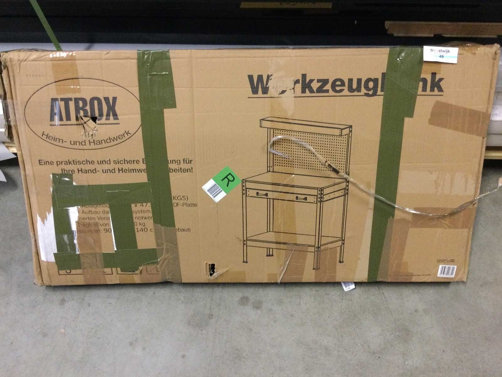 Het afgebeelde gereedschap en de afgebeelde koffer zijn NIET inbegrepen. Stevige stalen constructie. Werk-/opbergoppervlak 89,5 x 47,5 cm, MDF-plaat. Eenvoudige montage dankzij een plug-in systeem, geen ingewikkelde schroefverbindingen nodig. Hoog draagvermogen tot 100 kg. Geperforeerde achterwand met 480 (32 x 15) gaten. Ongecontroleerd Merk: Atrox