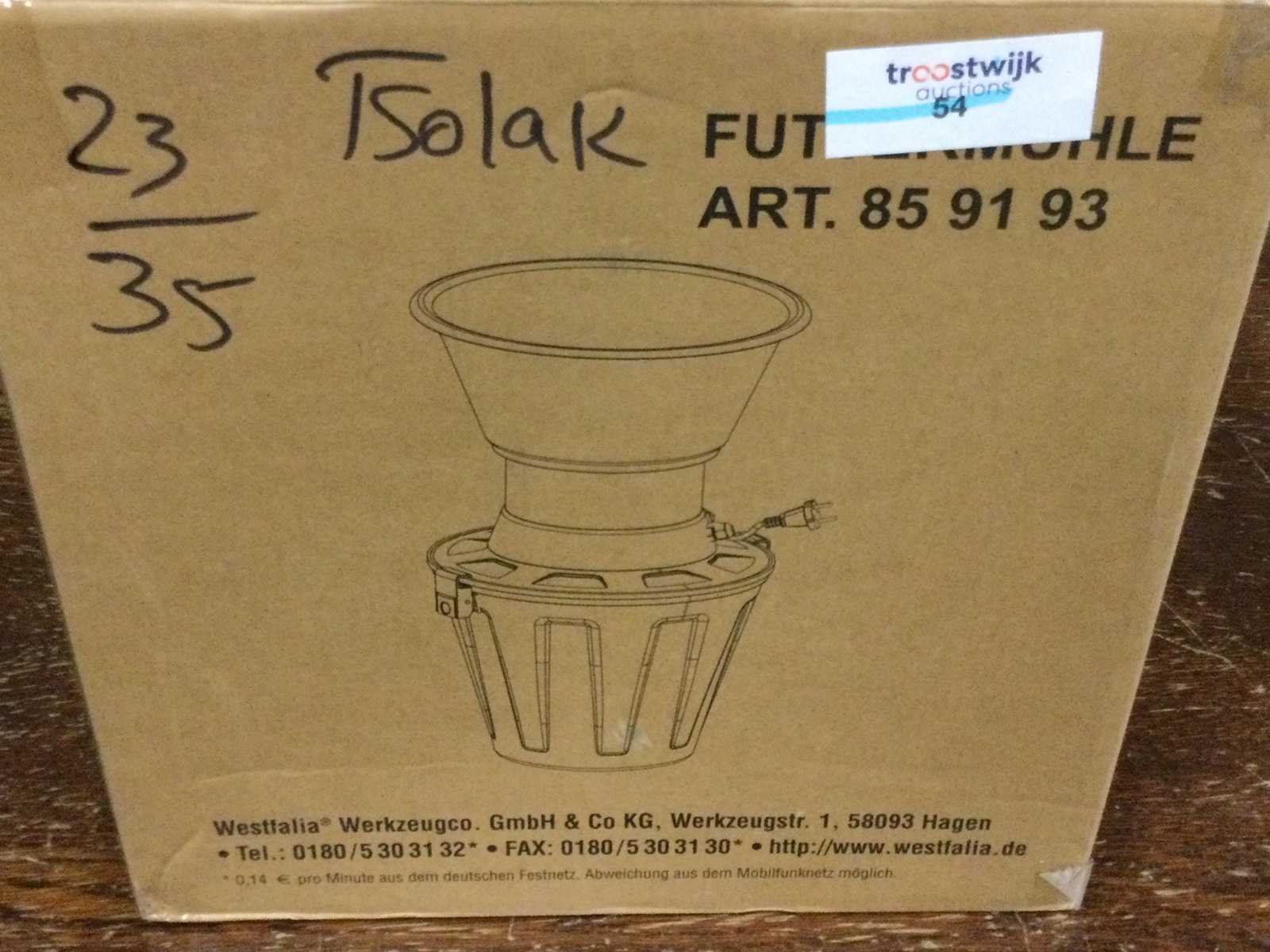 Maalt allerlei soorten graan zoals maïs, tarwe, haver, gerst, rogge, enz. 3 zeven met een maat van 1,3, 3 en 4mm zorgen ervoor dat je het graan precies op het juiste formaat maalt voor jouw dieren De krachtige motor kan tot 180kg per uur malen Grote inhoud: 15L opvangbak en 10L bovenkant Stofdicht Gemakkelijk te gebruiken 230V/50Hz met beschermingsklasse IPX3 Inclusief beschermhoes Gewicht: 4,4kg 600W Afmetingen: 58 x 36 x 33cm Ongecontroleerd Merk: Westfalia Kleur: Groen/geel