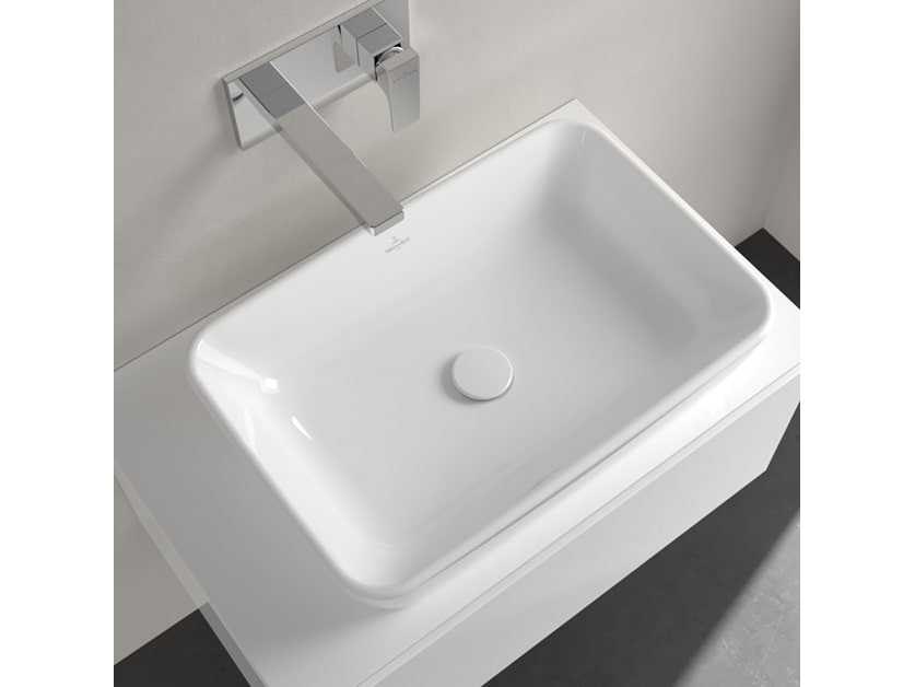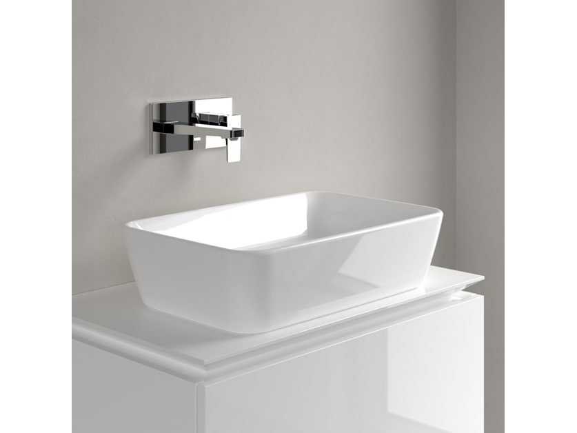 Opzetwastafel, 600 x 405 x 155 mm, zonder overloop, White Alpine Lengte in mm 405 Breedte in mm 600 Hoogte in mm 155 Interne diepte 110 Gewicht in kg 16,50 Geschikt voor: Wandmengkraan, Armatuur met verhoogde standpijp|bijpassend meubilair Oppervlakte glanzend Merk: Villeroy & Boch