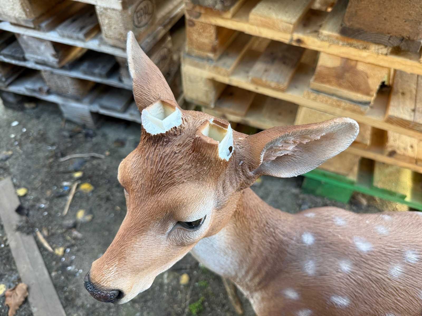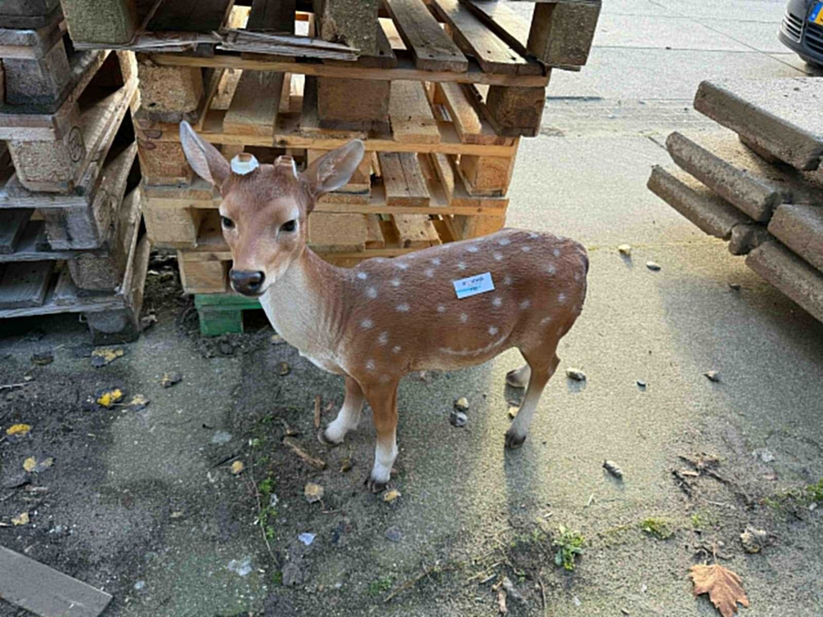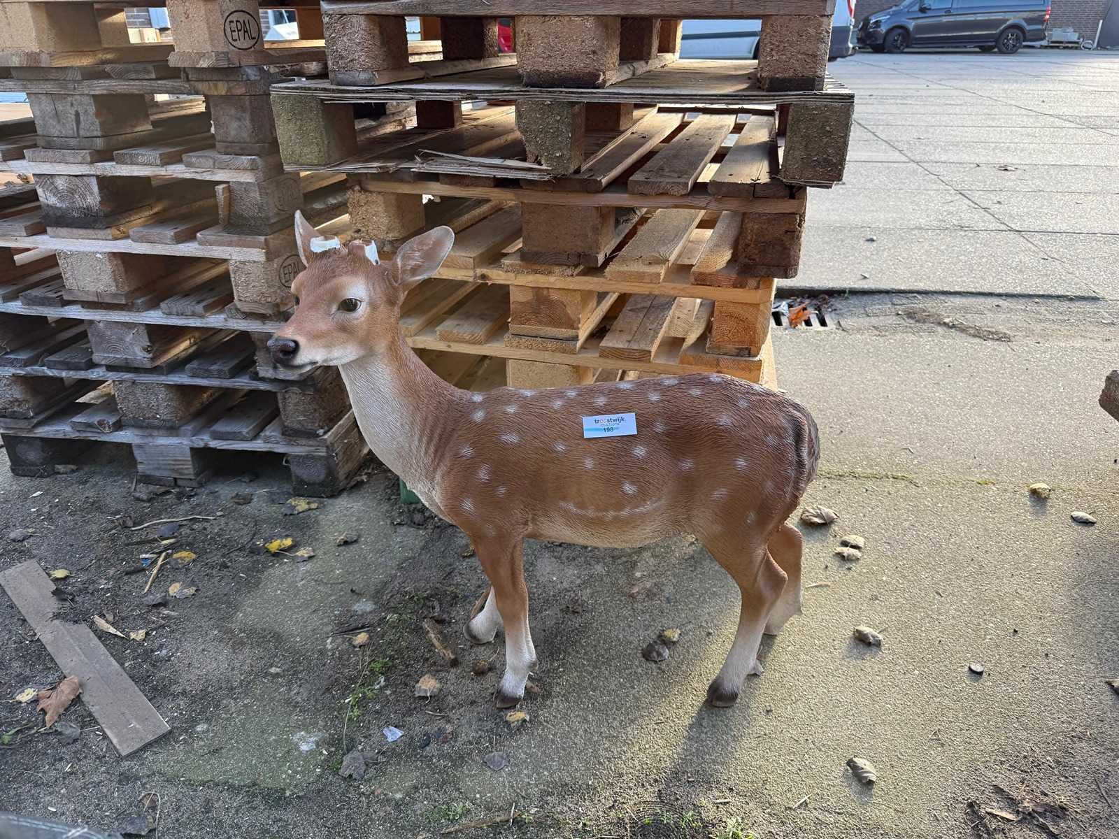Deze decoratieve hertensculptuur geeft elke tuin of ruimte een natuurlijke en realistische uitstraling. Het beeld is gedetailleerd afgewerkt en heeft een levensecht formaat. Ideaal als eyecatcher voor binnen of buiten. Het hert staat stevig en is gemaakt van duurzaam materiaal. Let op: aan de kop ontbreekt een stukje (zie foto) Belangrijke eigenschappen: Realistische uitstraling Geschikt voor binnen en buiten Stevig en duurzaam materiaal Levensecht formaat