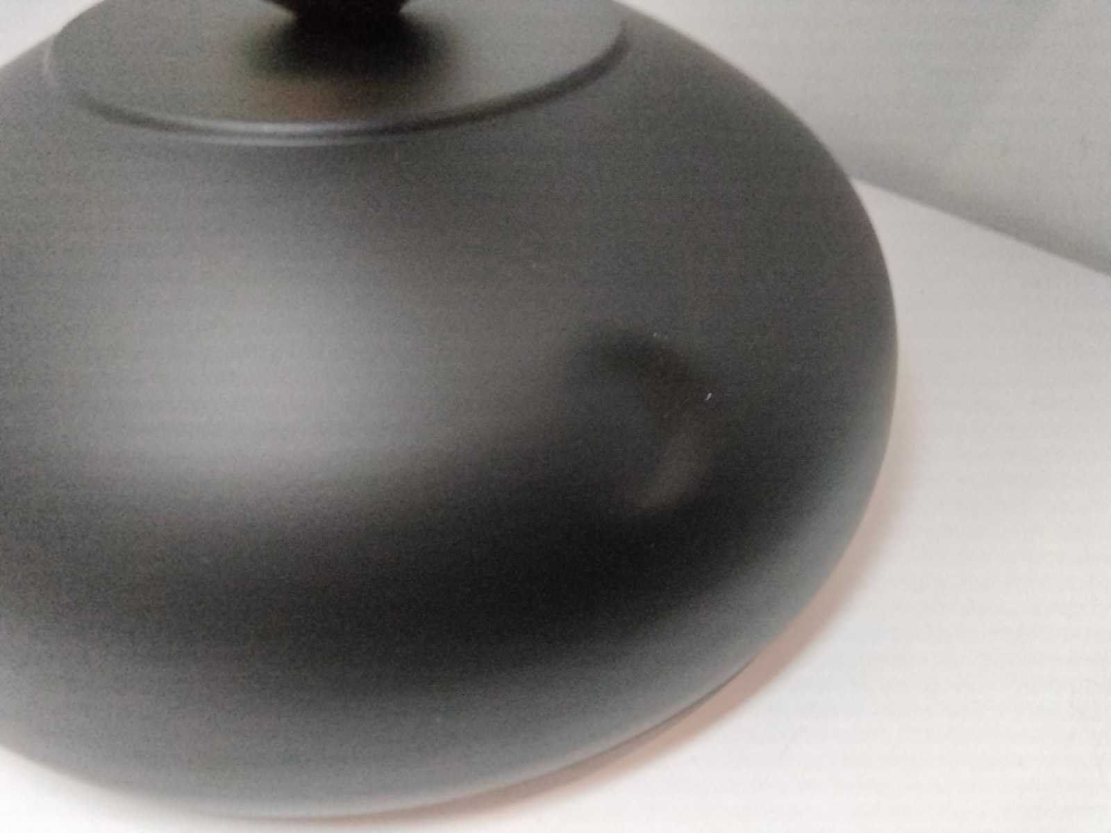 Zeer donker bruin of zwart met goud. Hoogte ca. 50 cm. Heeft lichte deukjes,