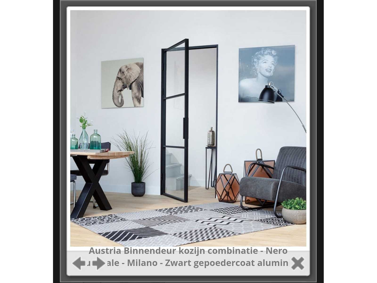 Afm. 93x241,5 Rechtsdraaiende deur. Pertura 2000 Serie Materiaal: Aluminium 3 Ramen met glas.