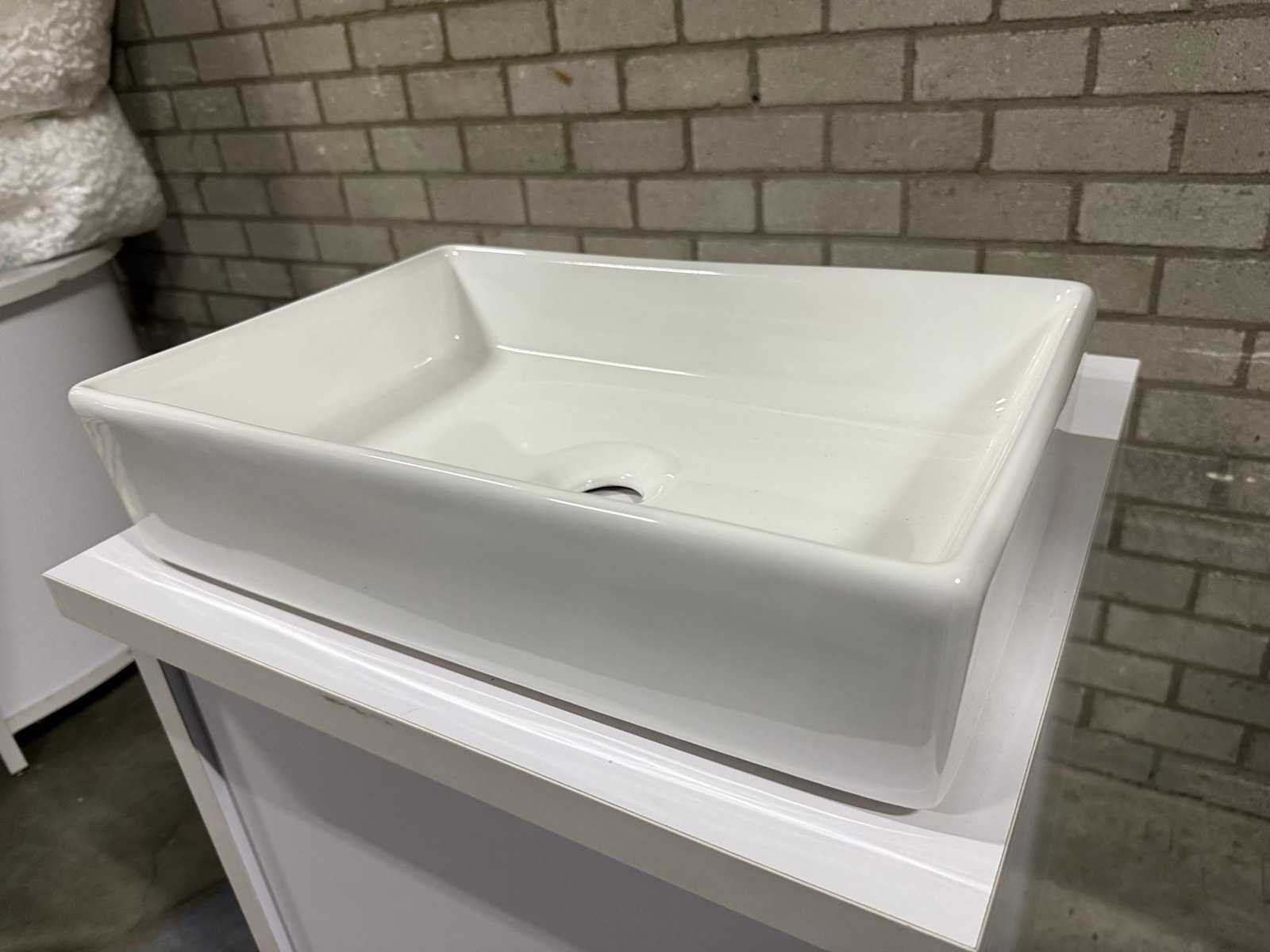 Strakke rechthoekige waskom met een moderne, minimalistische uitstraling. Het compacte formaat van 46 x 34 cm en de hoogte van 15,5 cm maakt deze waskom ideaal voor kleinere badkamers of toiletruimtes. De glanzend witte afwerking zorgt voor een frisse en tijdloze look. Dankzij het kraangat van 4 cm is hij geschikt voor de meeste opbouwkranen. Een stijlvol en praktisch model voor elke wastafelopstelling. Belangrijke eigenschappen: • Afmeting: 46 x 34 x 15,5 cm • Rechthoekige vorm • Glanzend wit • Kraangat: 4 cm • Compact en modern design Lengte: 34cm Breedte: 46cm Hoogte: 15,5cm