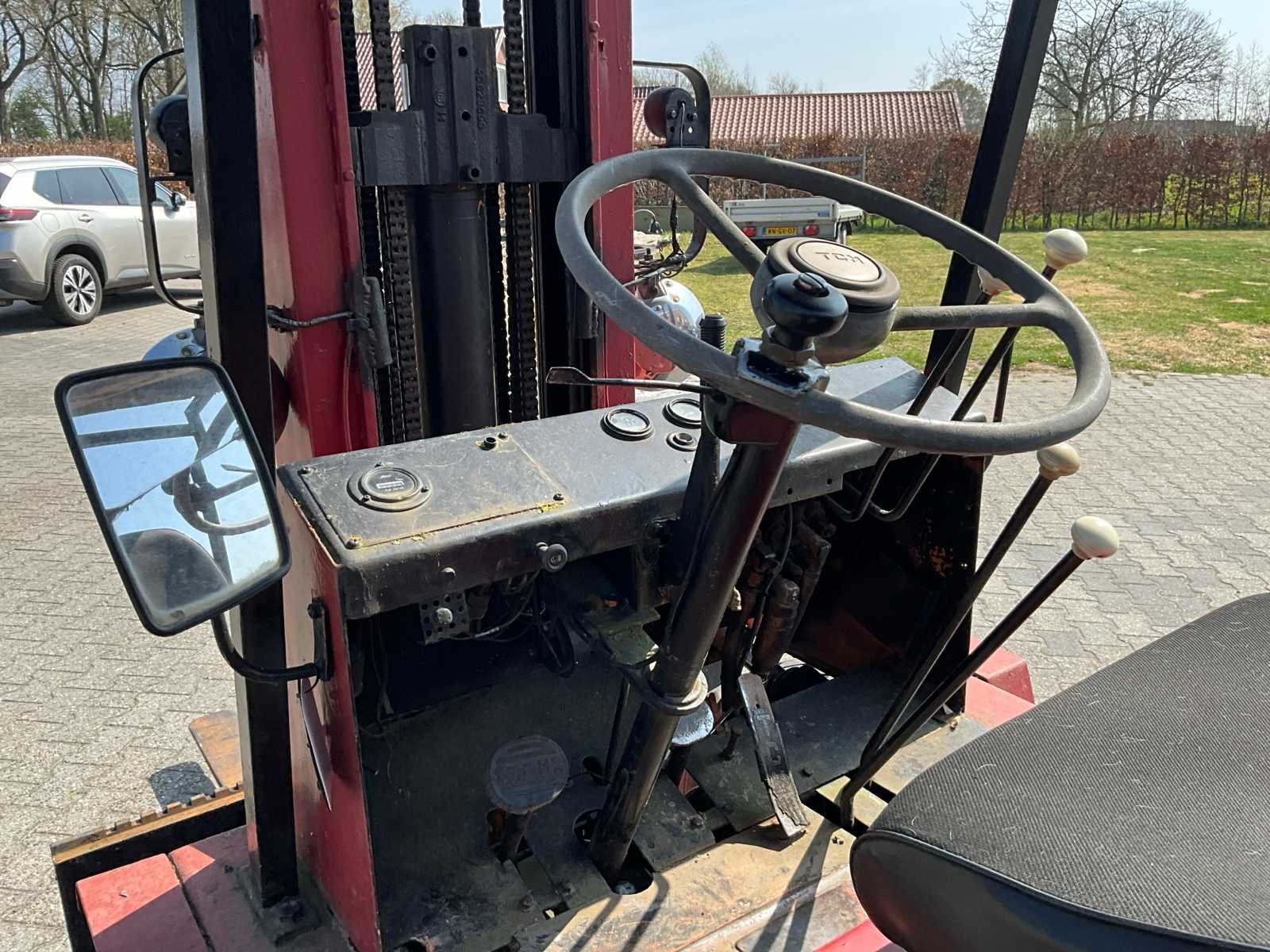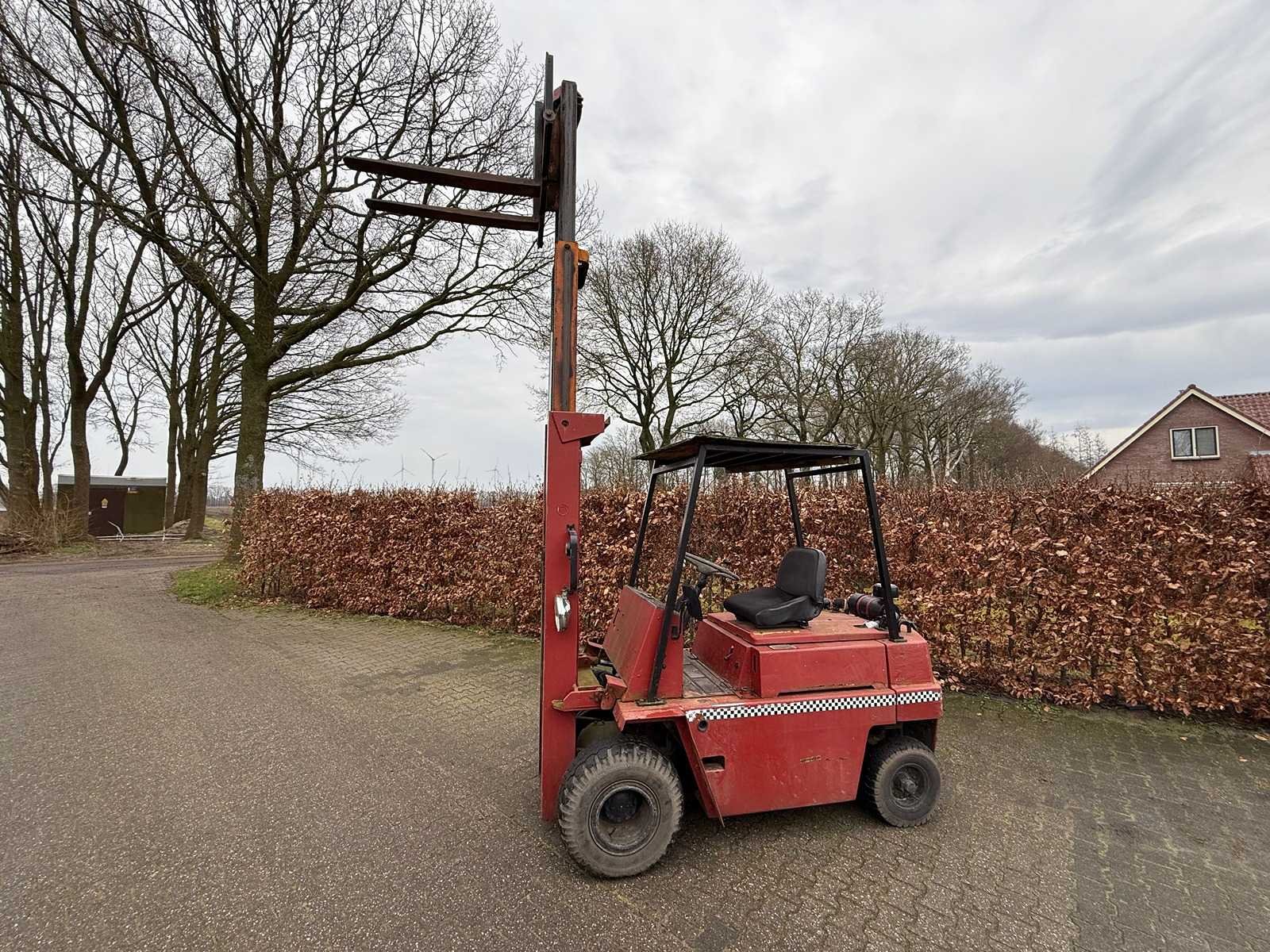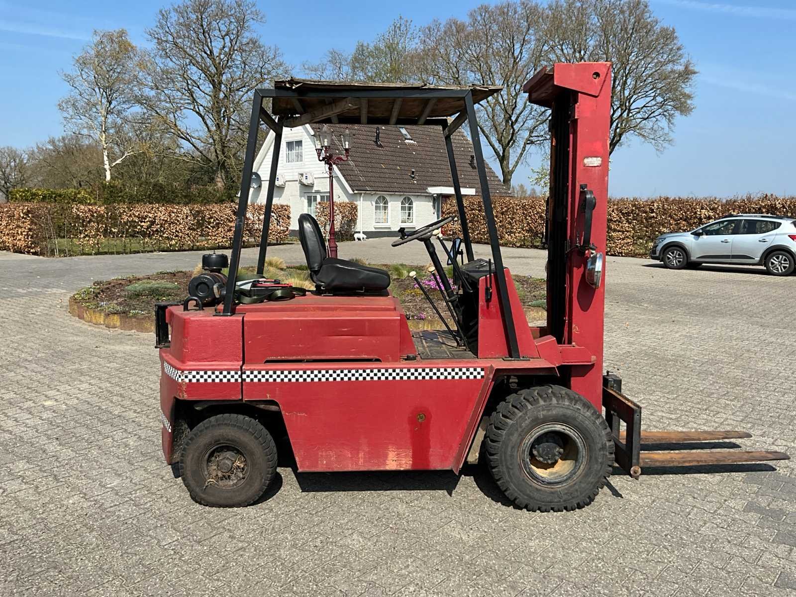Handgeschakeld 2 versnellingen, kiep cilinder lekt, niet werkende koplamp. Waarschijnlijk lampje kapot. Merk: TCM Type: M5T20 96OAL Brandstof: Diesel Free-lift: true Duplex mast: true Hefvermogen: 2500kg Diesel: true