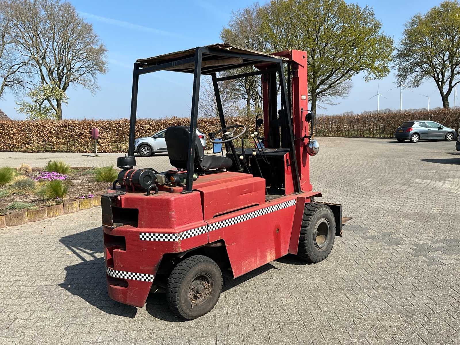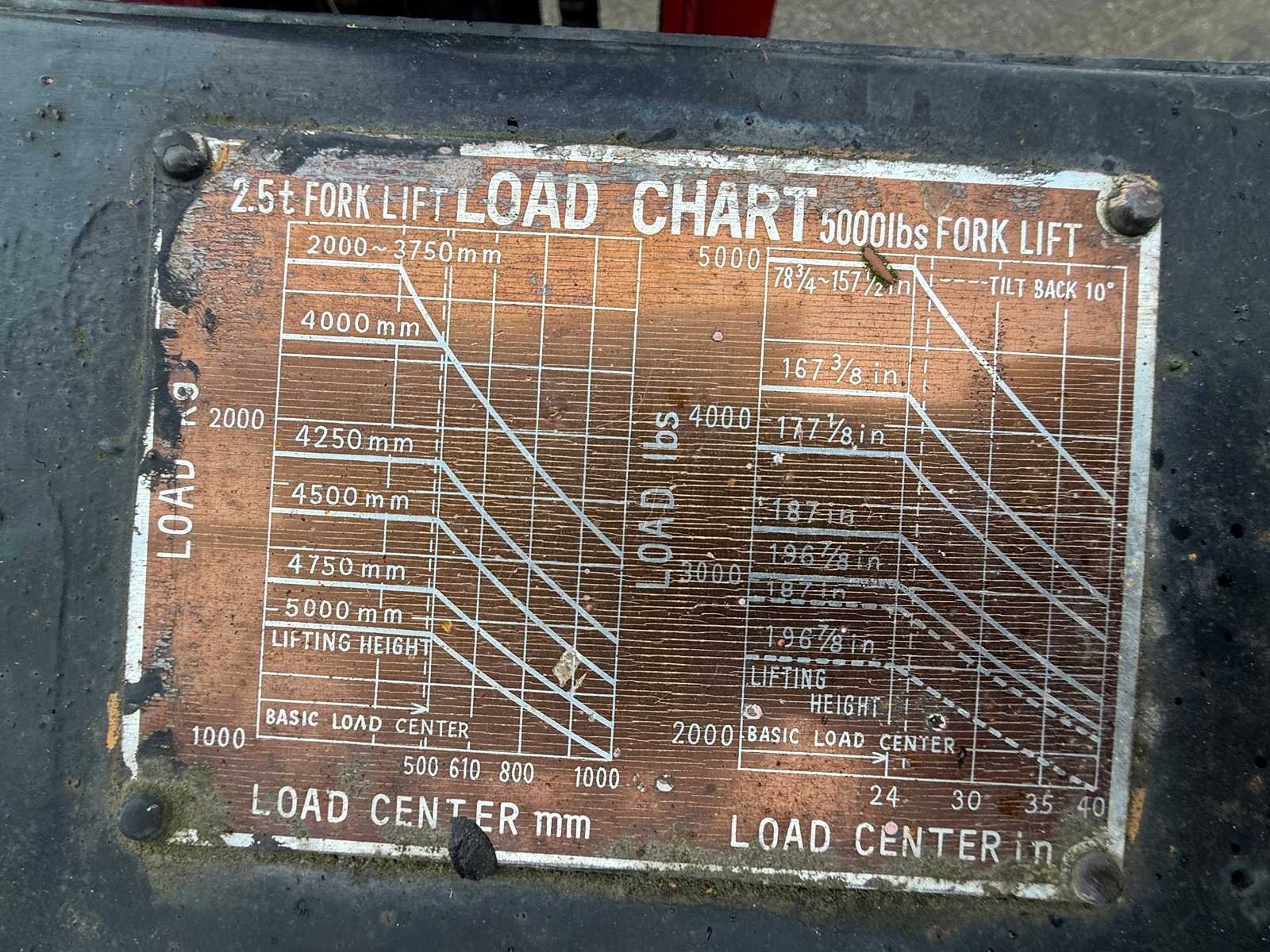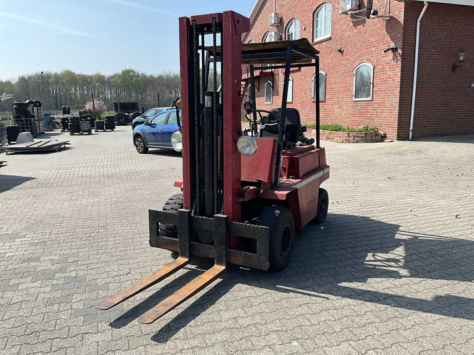 Handgeschakeld 2 versnellingen, kiep cilinder lekt, niet werkende koplamp. Waarschijnlijk lampje kapot. Merk: TCM Type: M5T20 96OAL Brandstof: Diesel Free-lift: true Duplex mast: true Hefvermogen: 2500kg Diesel: true
