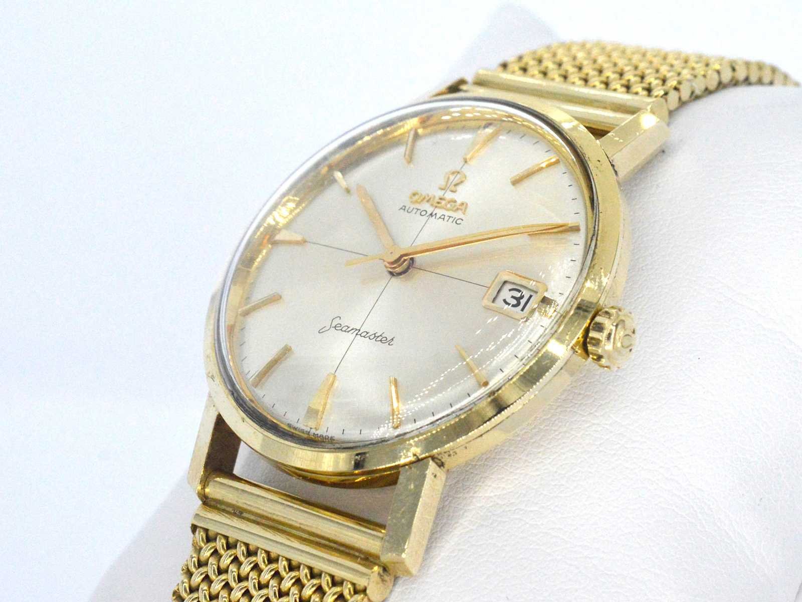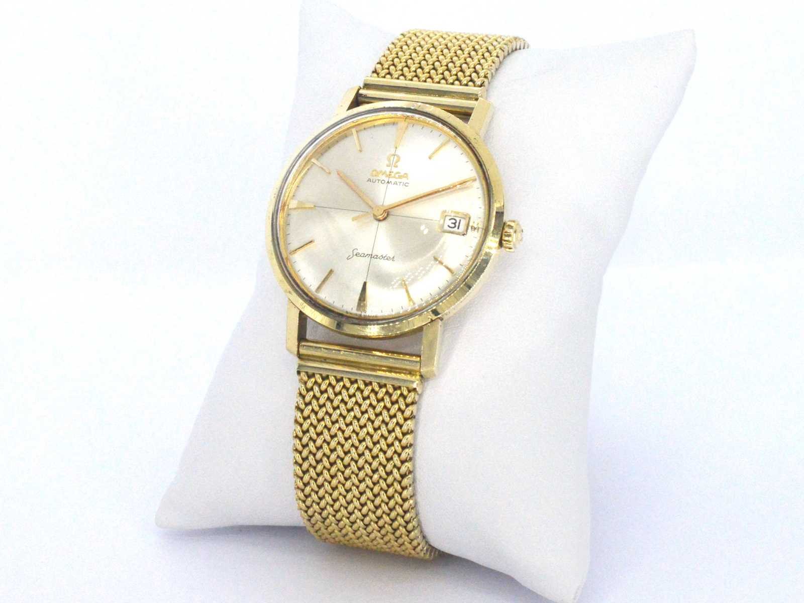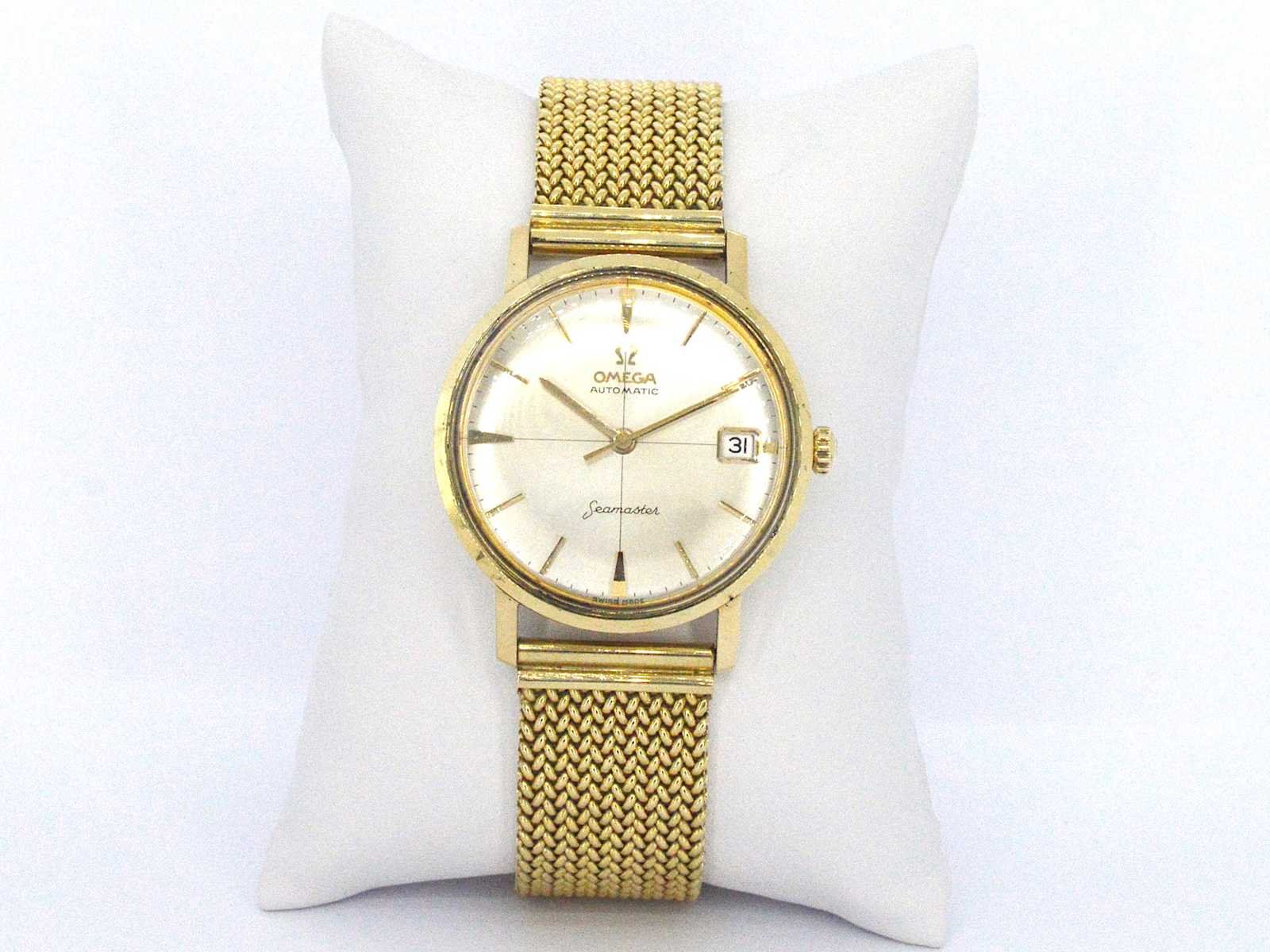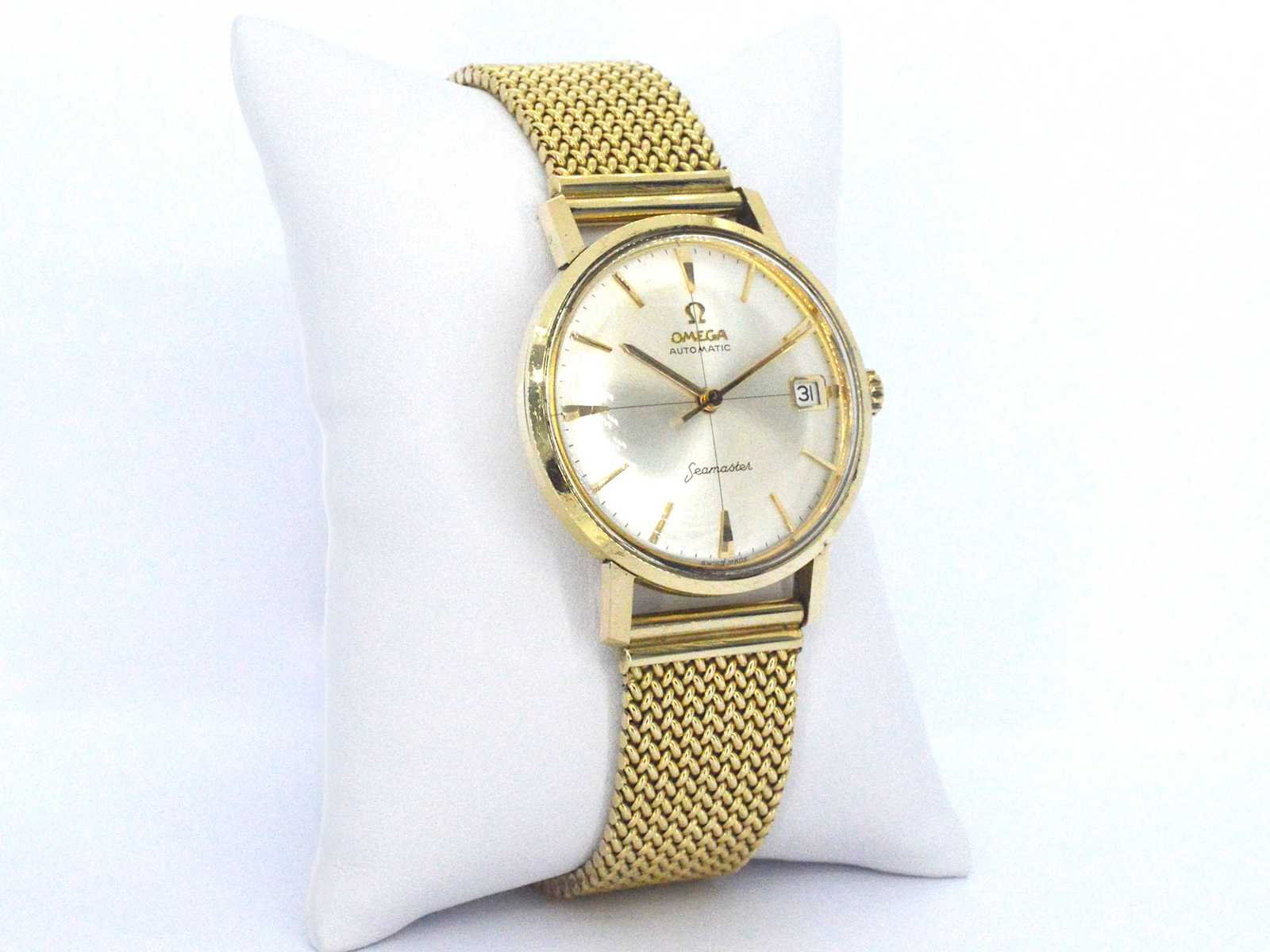 Samenvatting van gegevens Geelgouden horloge met Milanese band van het merk Omega Horloge (Merk): Omega; Model: Seamaster; Wijzerplaat: Goud; Klok (type): Automaat; Kast doorsnede: 35 mm; Lunette: Goud; Band: Goud; Juweel: Horloge; Gewicht: 84 gram; Afmetingen/lengte: 19 - 20 cm (verstelbaar); Materiaal: 14K goud (585); Conditie: Vintage; Verpakking: Luxe sieradendoos; Toelichting: De kwaliteit is overgenomen van het rapport behorend bij item.; Extra informatie: Het horloge is gecontroleerd en gereviseerd; Consumentenprijs: € 39.200,- Within 14 days Totaal gewicht: 84g Keurmerk: 585