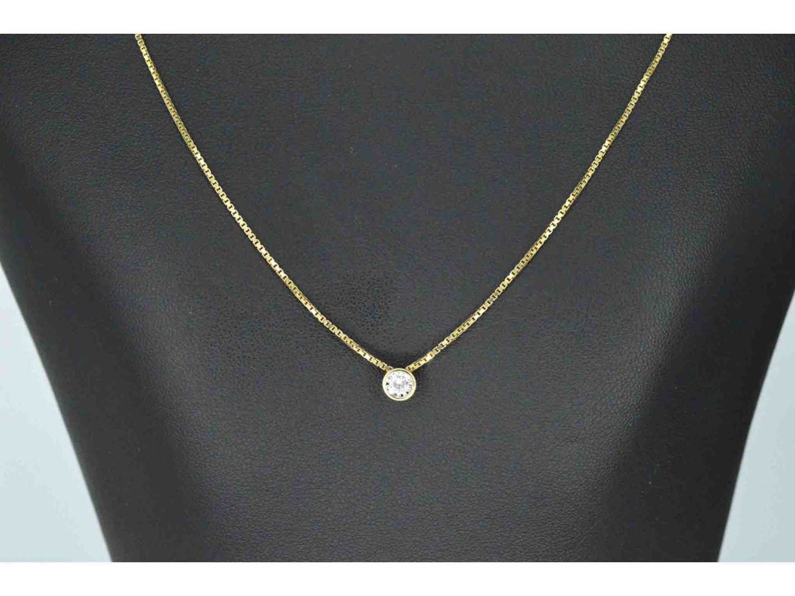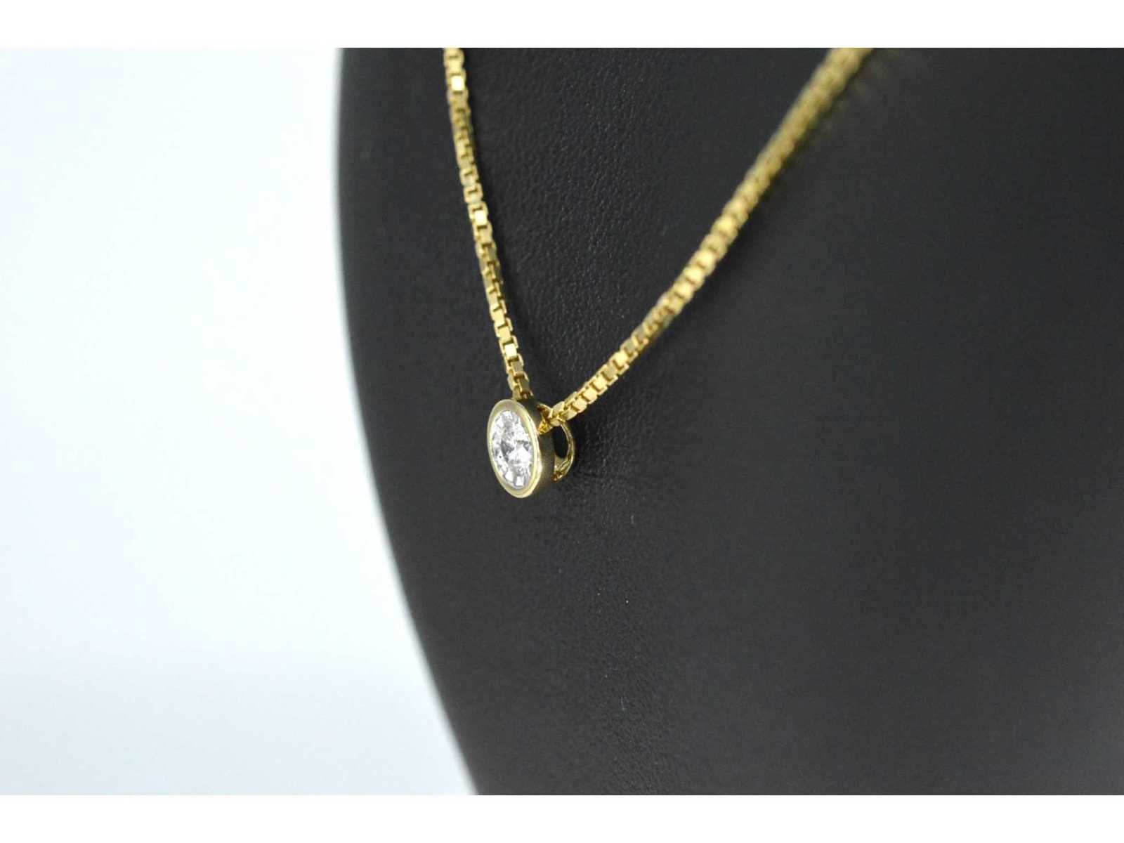 Samenvatting van gegevens Gouden hanger met een briljant geslepen diamant Diamant: Natuurlijk; Slijpvorm: Briljant geslepen; Gewicht (carat): 0.10 carat; Kleur: F-G; Zuiverheid: SI-P; Slijpkwaliteit: Zeer mooi; Juweel: Hanger (excl. ketting); Gewicht: 0.3 gram; Materiaal: 14k goud (585); Conditie: Nieuw; Verpakking: Luxe sieradendoos; Toelichting: De kwaliteit is overgenomen van het rapport behorend bij item. De waardebepaling is een beoordeling van een gecertificeerde diamantair, gebaseerd op consumentenprijzen.; Consumentenprijs: € 578,- Within 14 days Materiaal: Goud Voornaamste diamant: Natuurlijk Kleur diamant: F-G Gewicht diamant: 0.10ct Slijpvorm diamant: Briljant geslepen Slijpkwaliteit diamant: Zeer mooi Zuiverheidsgraad diamant: SI-P Totaal gewicht: 0.3g Keurmerk: 585