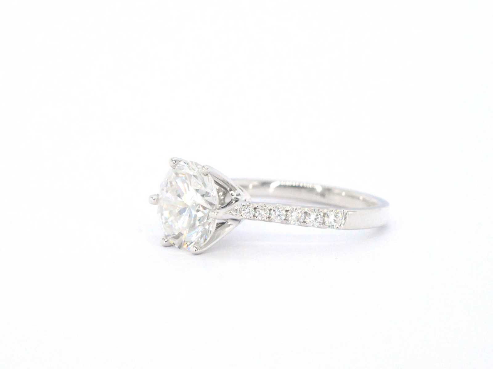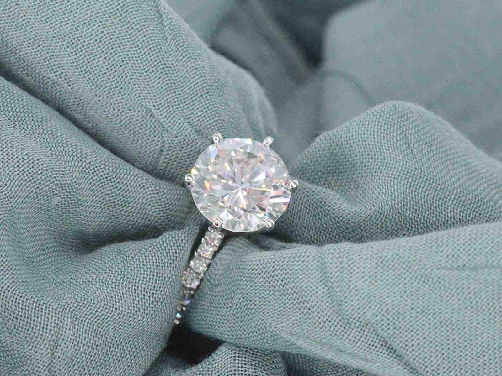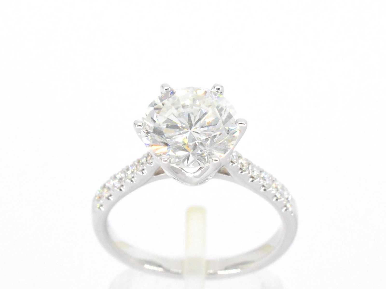 Samenvatting van gegevens Witgouden ring met een diamant van 3.00 carat Diamant: Natuurlijk; Aantal: 1 stuk; Slijpvorm: Briljant geslepen; Gewicht (carat): 3.00 carat; Kleur: E-F; Zuiverheid: SI2; Slijpkwaliteit: Zeer mooi; Certificaat: IGI; Diamant (secundair): Kleine diamanten; Slijpvorm: Briljant geslepen; Gewicht (carat): 0.30 carat totaal; Kleur: F-G; Zuiverheid: VS; Juweel: Ring; Gewicht: 4 gram; Ringmaat (op maat gemaakt*): 53 (17 mm); Materiaal: 18K goud (750); Conditie: Nieuw; Verpakking: Luxe sieradendoos; Toelichting: De kwaliteit is overgenomen van het rapport behorend bij item. De waardebepaling is een beoordeling van een gecertificeerde diamantair, gebaseerd op consumentenprijzen.; Consumentenprijs: € 93.000,- Within 14 days Materiaal: Goud Voornaamste diamant: Natuurlijk Gewicht diamant: 3.00ct Totaal gewicht: 4g Keurmerk: 750 Certificaat: IGI Kleur diamant: E-F Slijpvorm diamant: Briljant geslepen Slijpkwaliteit diamant: Zeer mooi Zuiverheidsgraad diamant: SI2