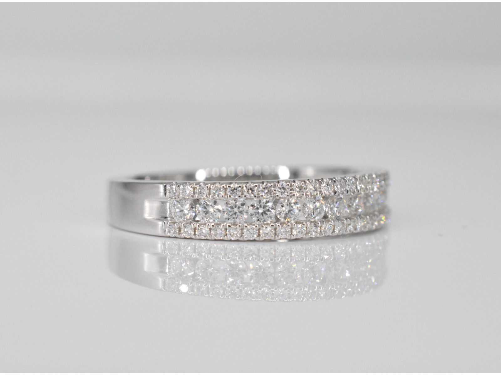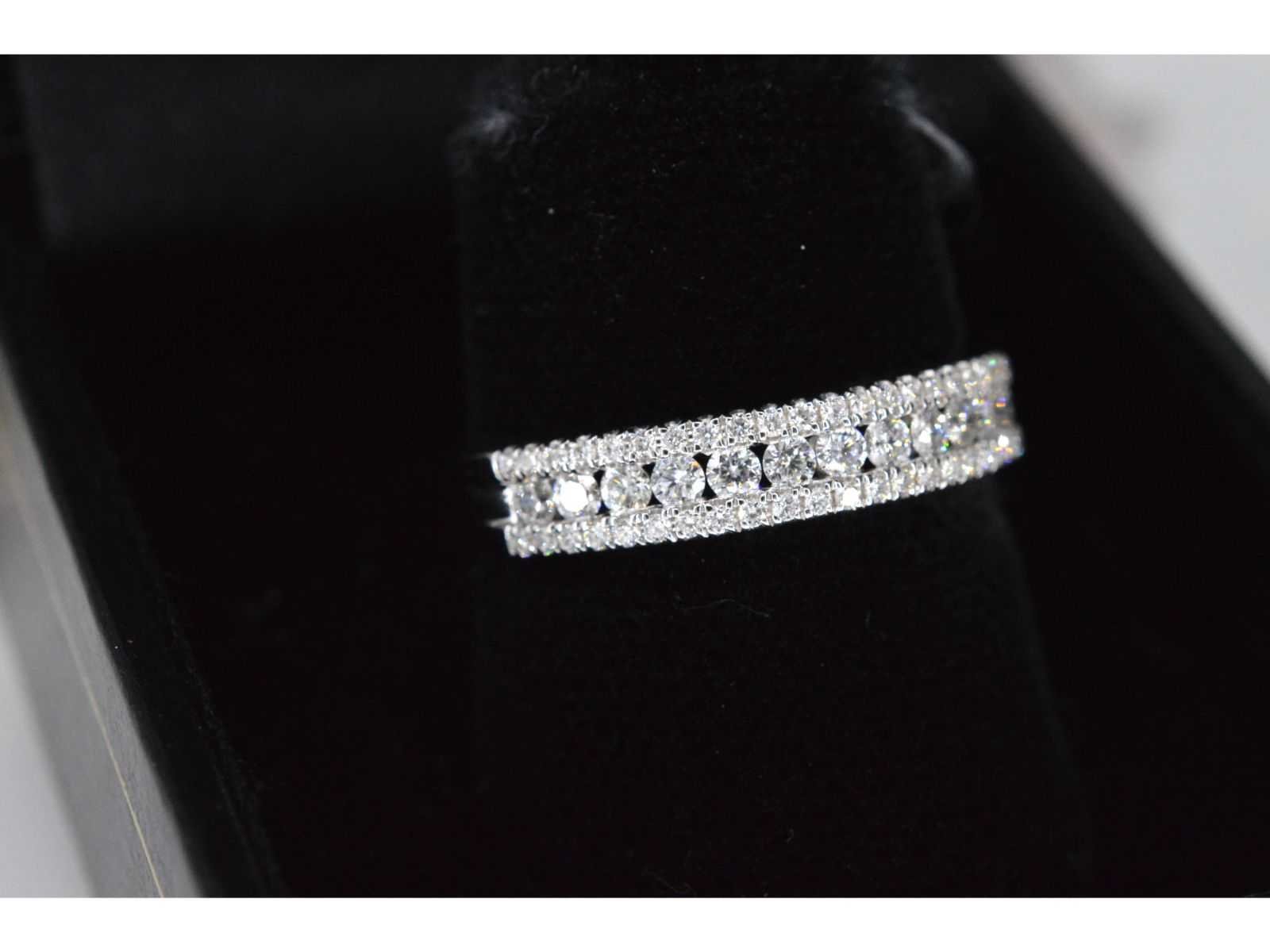 Samenvatting van gegevens Witgouden ring met diamanten Diamant: Natuurlijk; Slijpvorm: Briljant geslepen; Gewicht (carat): 0.50 carat; Kleur: F-G; Zuiverheid: VS; Slijpkwaliteit: Zeer mooi; Juweel: Ring; Gewicht: 3 gram; Ringmaat (op maat gemaakt*): 17 (53 mm); Materiaal: 18K goud (750); Conditie: Nieuw; Verpakking: Luxe sieradendoos; Toelichting: De kwaliteit is overgenomen van het rapport behorend bij item. De waardebepaling is een beoordeling van een gecertificeerde diamantair, gebaseerd op consumentenprijzen.; Consumentenprijs: € 4.235,- Within 14 days Materiaal: Goud Voornaamste diamant: Natuurlijk Gewicht diamant: 0.50ct Totaal gewicht: 3g Keurmerk: 750 Kleur diamant: F-G Slijpvorm diamant: Briljant geslepen Slijpkwaliteit diamant: Zeer mooi Zuiverheidsgraad diamant: VS