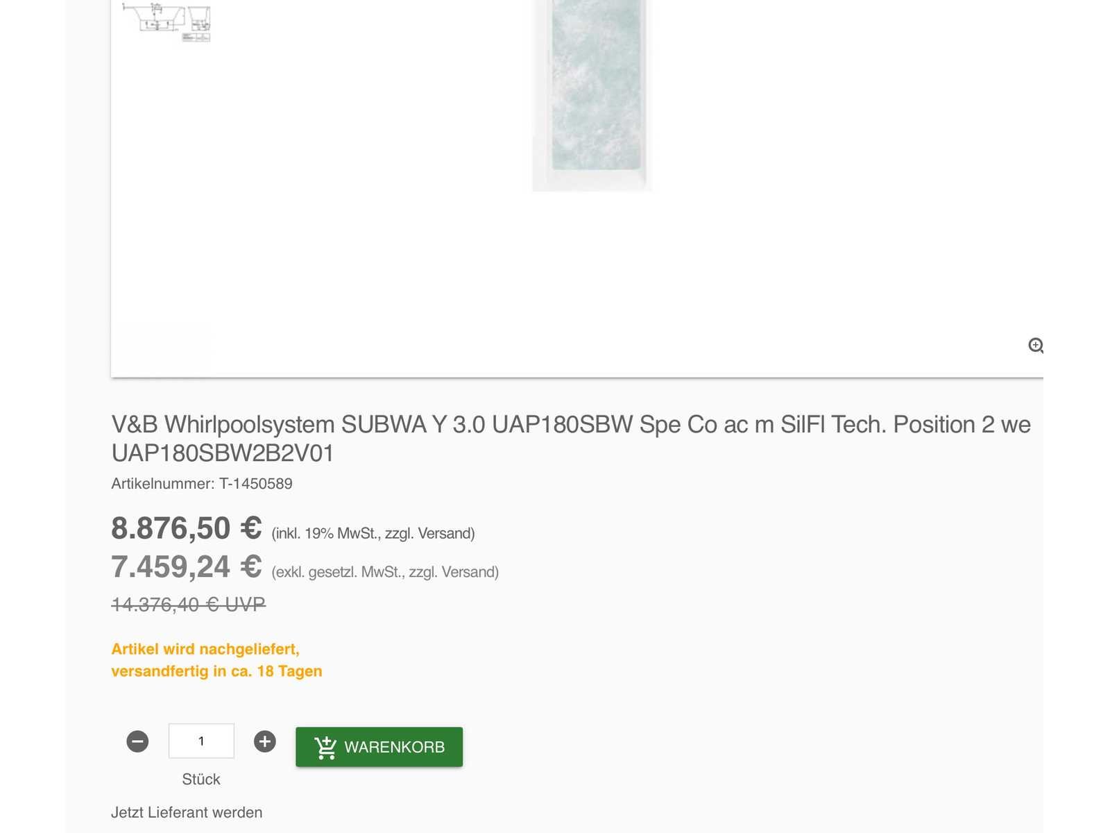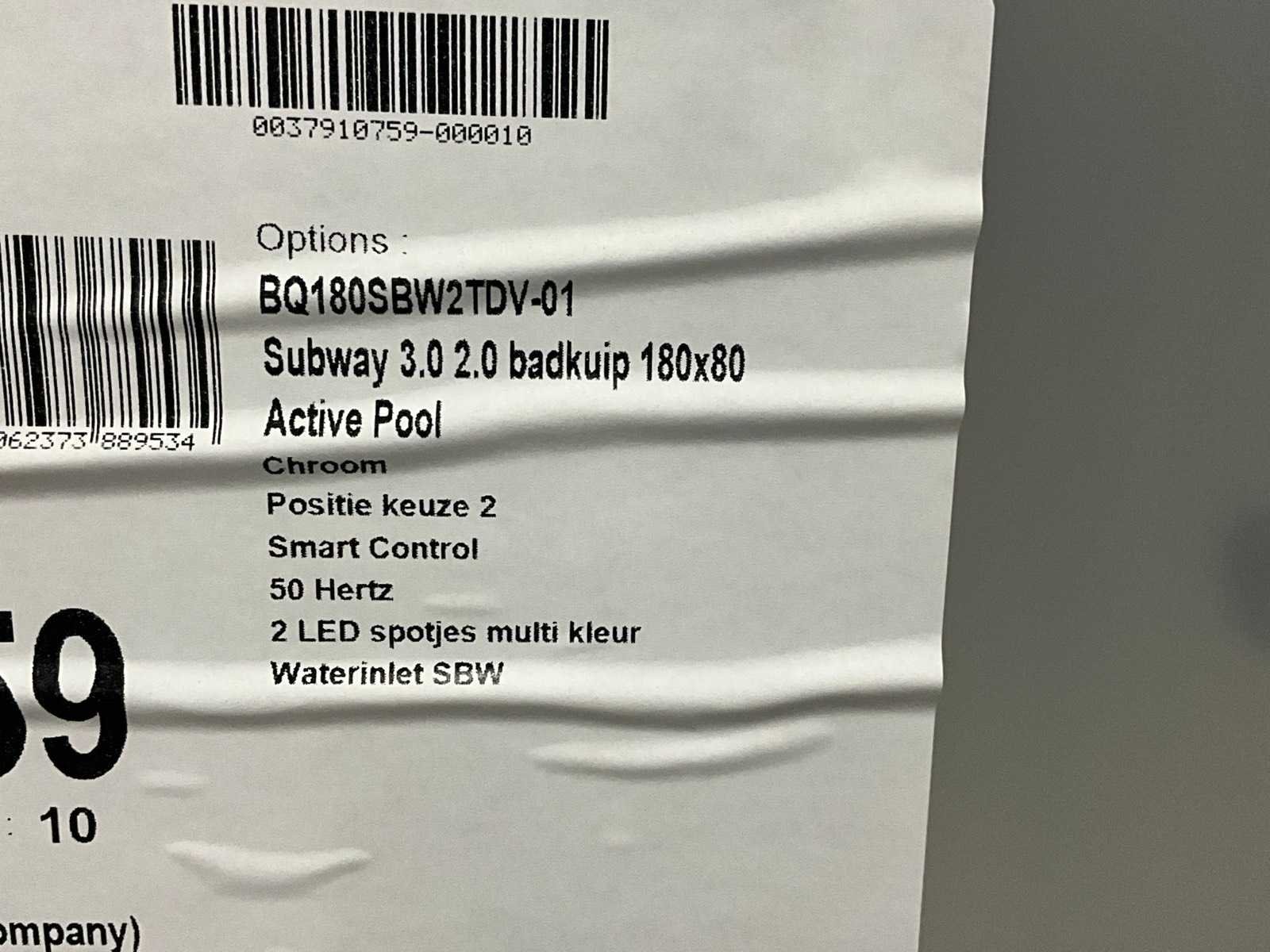 1800 x 800 mm, White Alpine Merk: Villeroy&Boch Model: Subway 3.0