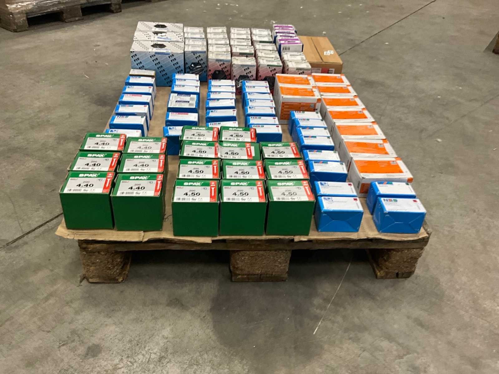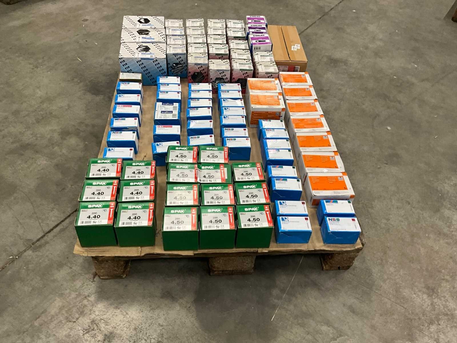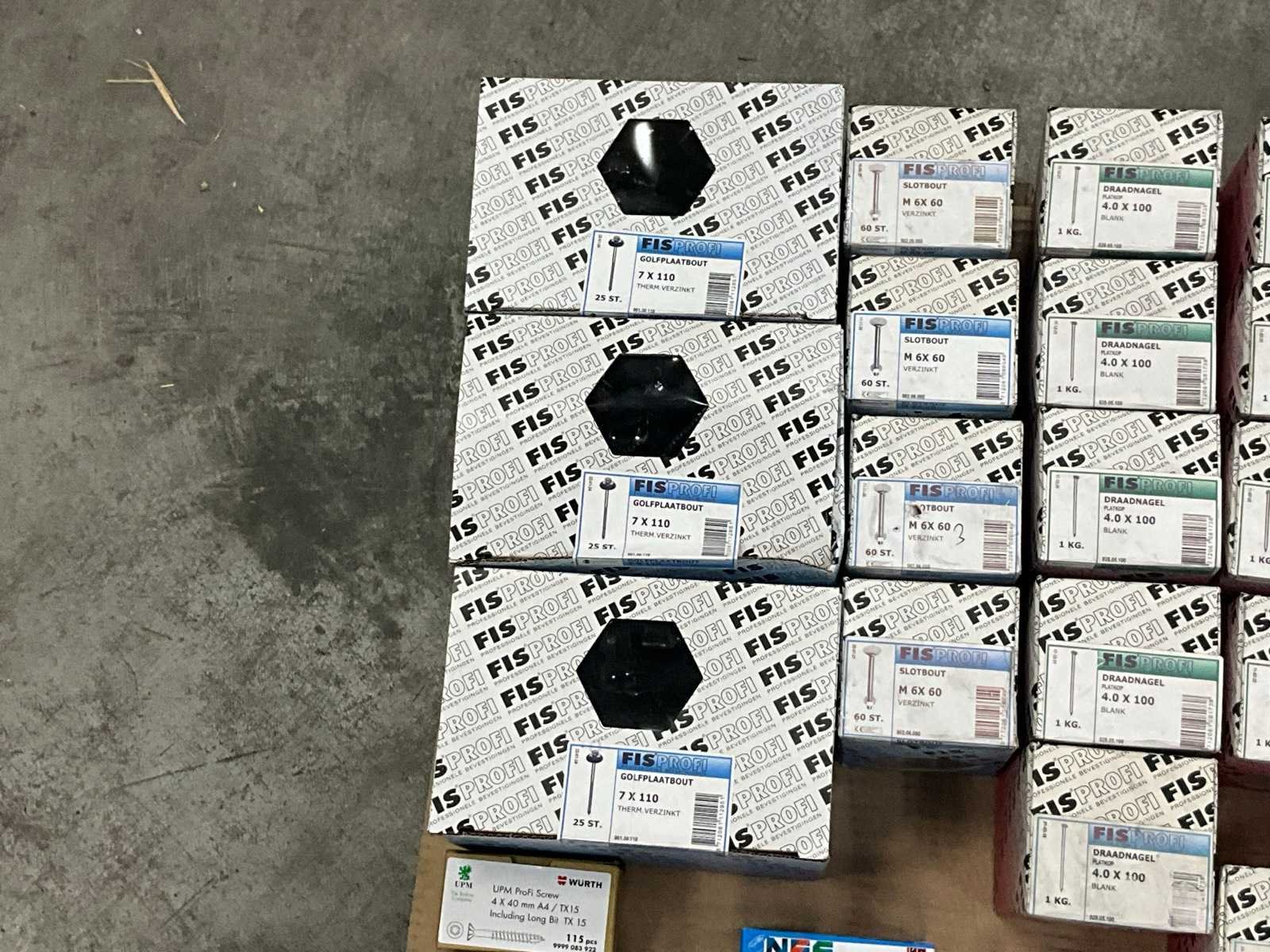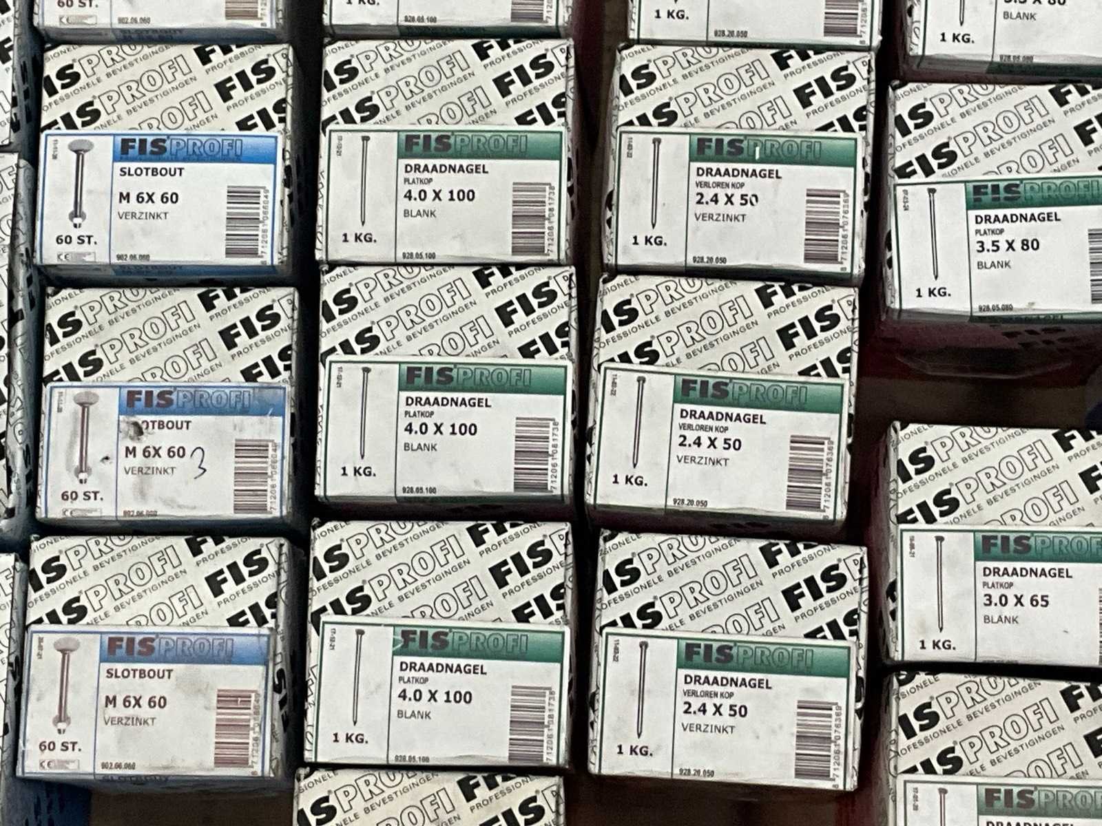 Partij diverse schroeven, draadnagels, slotbouten etc.